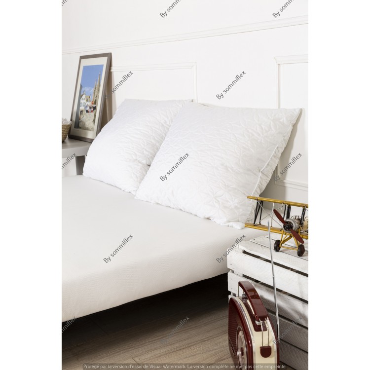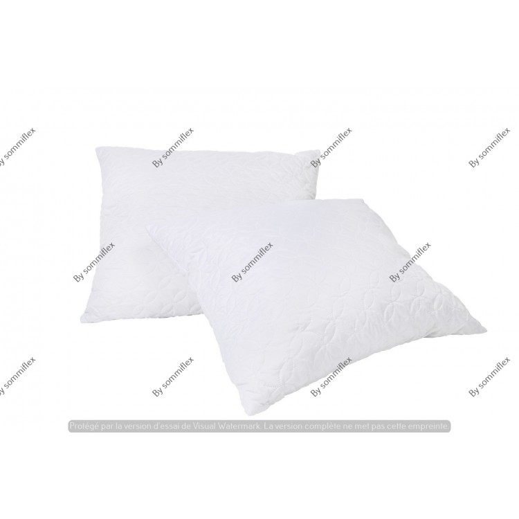 •Lot de 2 Oreillers a memoire de forme matelasses en microfibre 100% polyester de coloris blanc.