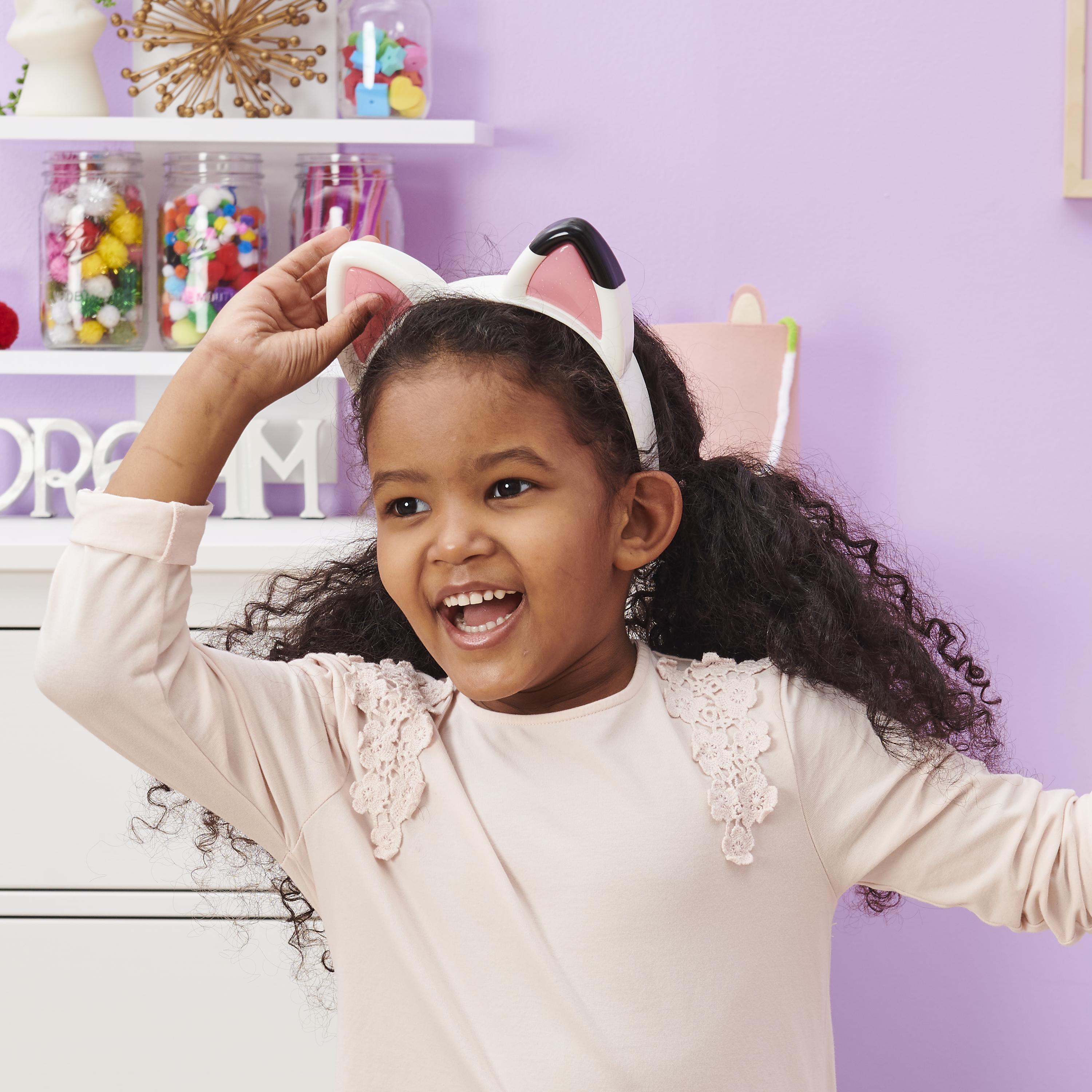 L'univers magique de Gabby et de ses adorables amis les chats. Retrouvez l'univers de Gabby et la Maison Magique grâce à ces oreilles musicales à porter avec effets sonores et lumineux pour revivre les scènes du dessin animé. 3 modes de jeu à activer en appuyant sur les boutons situés sur les oreilles. Une application gratuite à télécharger grâce au QR code inclus pour poursuivre l'expérience de jeu. Taille unique. Fonctionne avec 4 piles LR44 fournies. Boîte ouverte avec fonction démonstration. A partir de 3 ans.