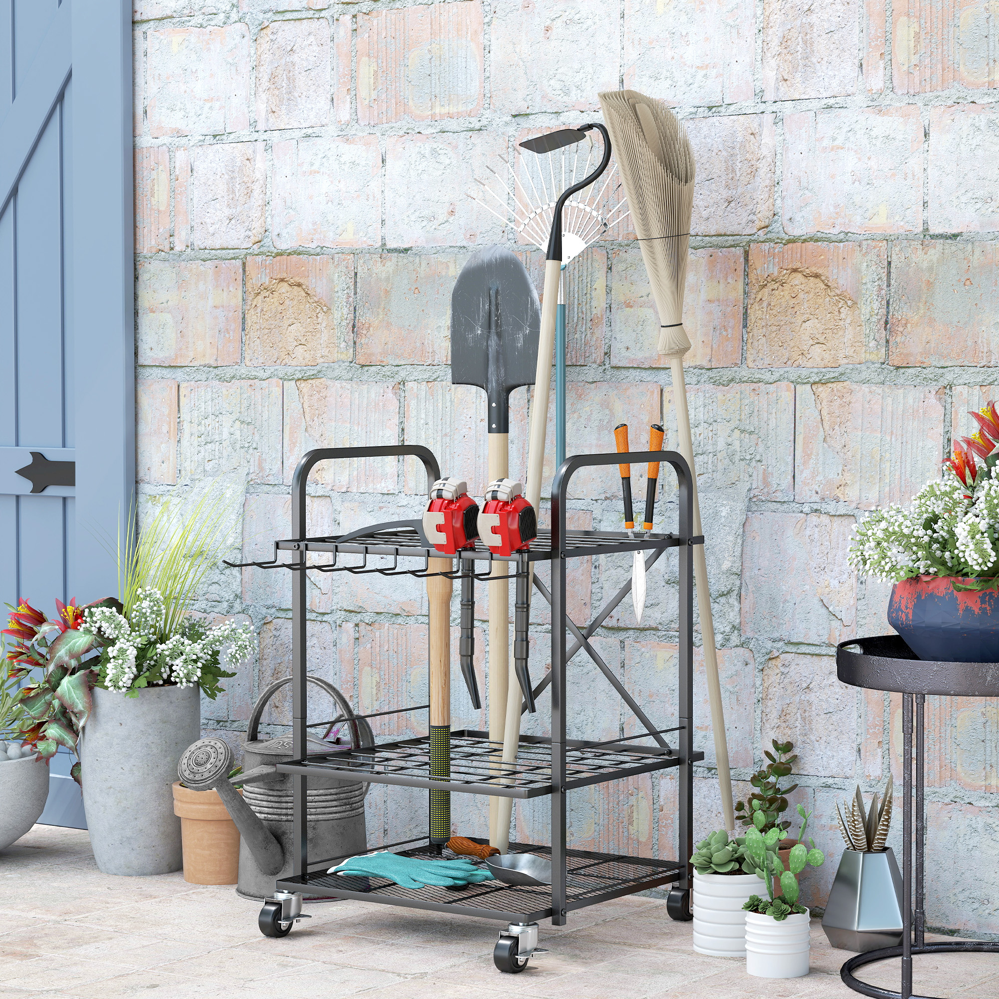 | Libellé | Organisateur d'outils de jardin - chariot de jardin - desserte - 9 crochets, 20 compartiments - métal noir |