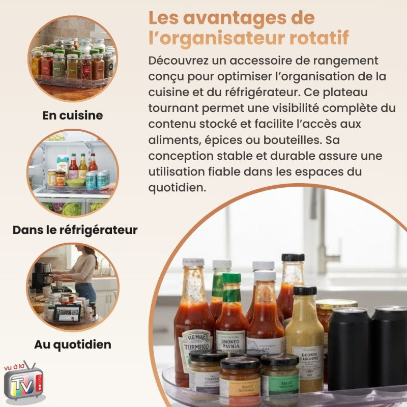 - Organisateur de rangement cuisine rotatif : plateau tournant multifonction