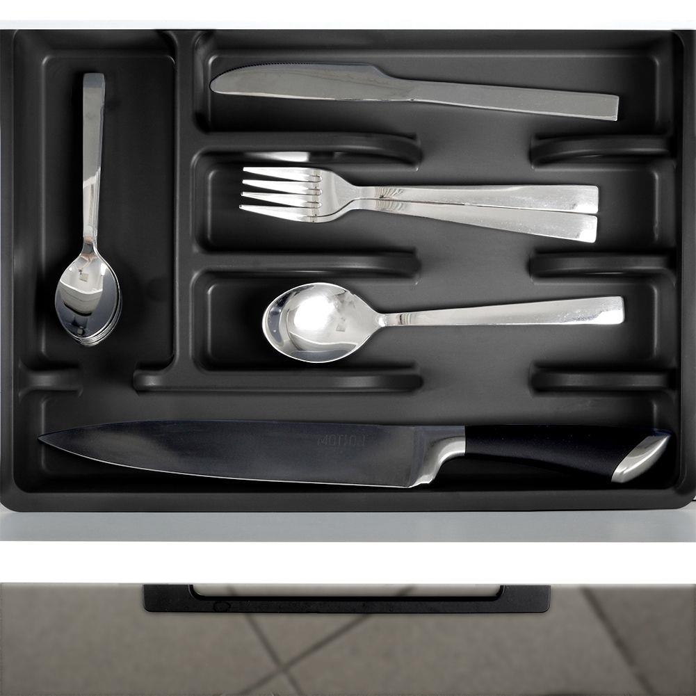 POUR TIROIR - Range-couverts aux dimensions de 36 x 25,5 x 6 cm. L'insert universel s'intègre dans n'importe quel tiroir. DURABLE - Le plateau du tiroir est en plastique noir de haute qualité. UTILE - L'organisateur de couverts est un incontournable dans chaque cuisine. Avec son aide, nous organiserons les ustensiles de cuisine et les couverts auront leur place dédiée. CAPACITÉ - L'insert est très spacieux. Il a cinq compartiments que nous utiliserons pour : 3x couverts, 1x compartiment pour les cuillères, 1x partie longue pour les ustensiles de cuisine. NETTOYAGE FACILE - L'insert peut être facilement nettoyé avec un chiffon humide ou lavé au lave-vaisselle. L'organisateur de couverts est utile dans toutes les cuisines. Grâce à lui, couverts et ustensiles de cuisine auront leur place dans le tiroir. Le plateau pour le tiroir vous permettra de gérer correctement l'espace dans le tiroir. Avec l'aide de l'insert, nous pourrons maintenir l'ordre dans les armoires. L'insert est universel, il s'intègre donc dans n'importe quel tiroir. Le produit original de la marque Wilde. Fabriqué conformément aux normes européennes.