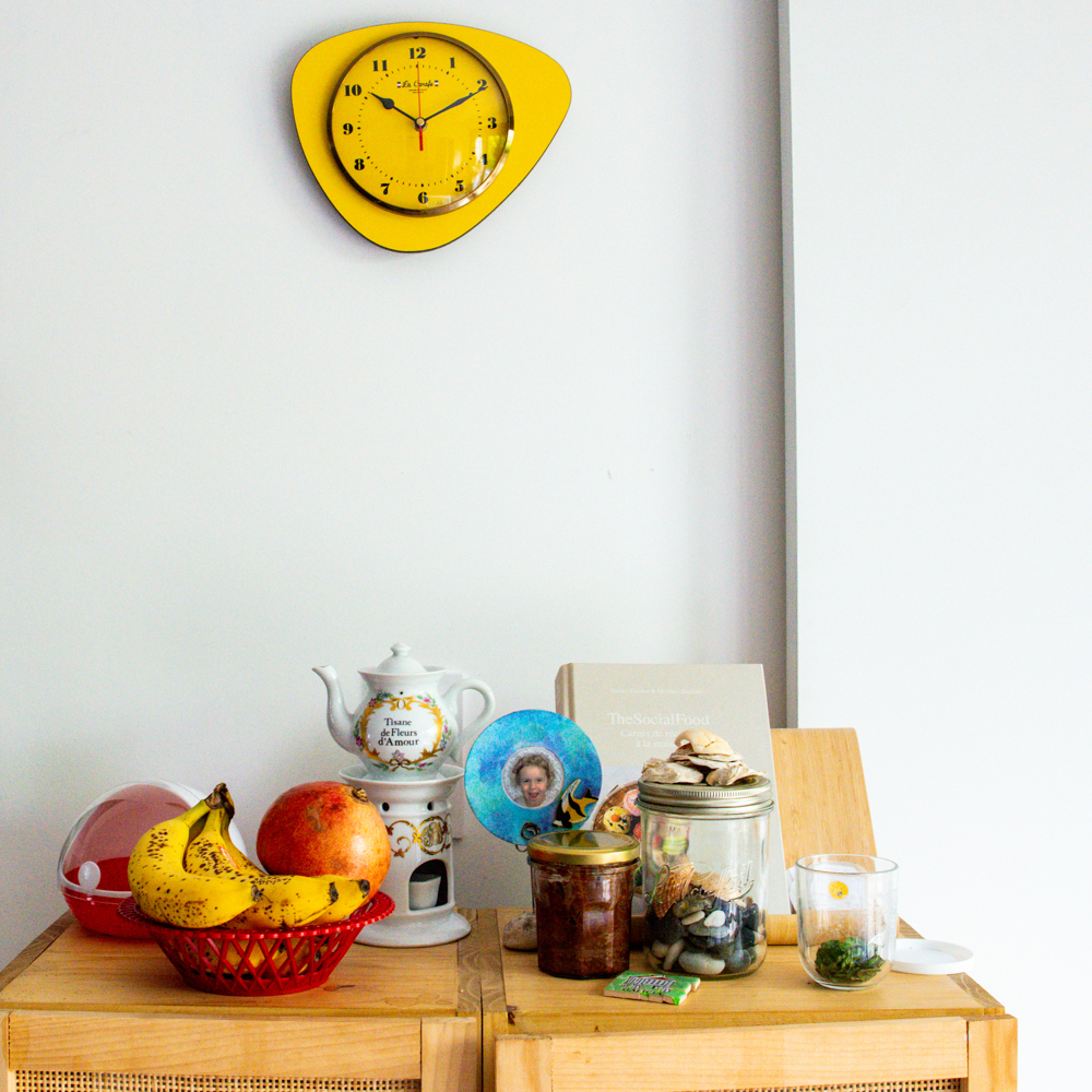 Une horloge murale décorative, au design affirmé et intemporel des années 60. Dessinée à Bordeaux et dotée d'un mécanisme à quartz silencieux, vous êtes assurés d'un affichage d'heure précis. Avec sa forme médiator et sa gamme de couleurs "pop", l'effet "wahou"est assuré dès que vous la verrez troner dans votre salon, chambre, cuisine ou autre lieu de votre choix.