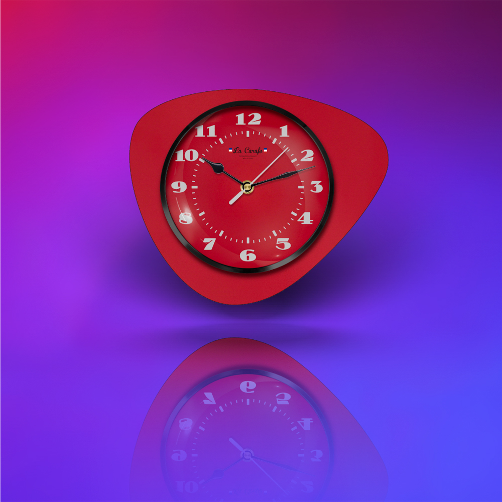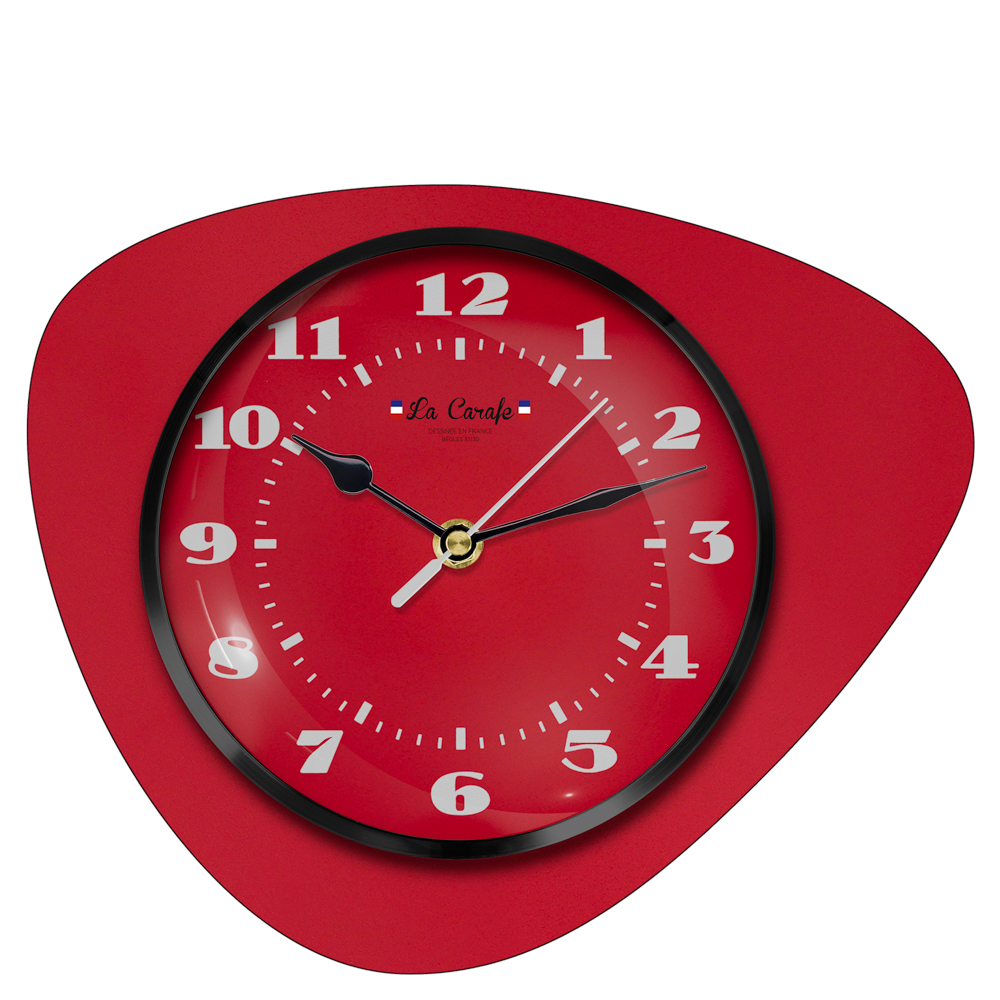 Une horloge murale décorative, au design affirmé et intemporel des années 60. Dessinée à Bordeaux et dotée d'un mécanisme à quartz silencieux, vous êtes assurés d'un affichage d'heure précis. Avec sa forme médiator et sa gamme de couleurs "pop", l'effet "wahou"est assuré dès que vous la verrez troner dans votre salon, chambre, cuisine ou autre lieu de votre choix.
