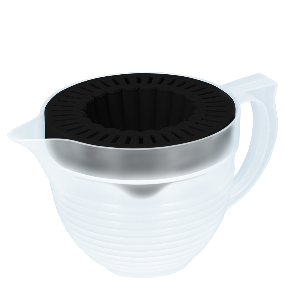 Clin d'œil au design retro de notre carafe, ce presse agrume manuel "LA CARAFE", façonné en plastique alimentaire se compose de deux parties séparées : un bol transparent d'une contenance de 500ml avec bec verseur et poignée de service. Un couvercle coloré composé d'un cône cannelé pour extraire un maximum de jus, d'une gouttière munie de fentes pour retenir pulpe, pépins ..., et réversible pour faciliter son rangement. Une belle manière d'avoir une journée vitaminée et colorée.