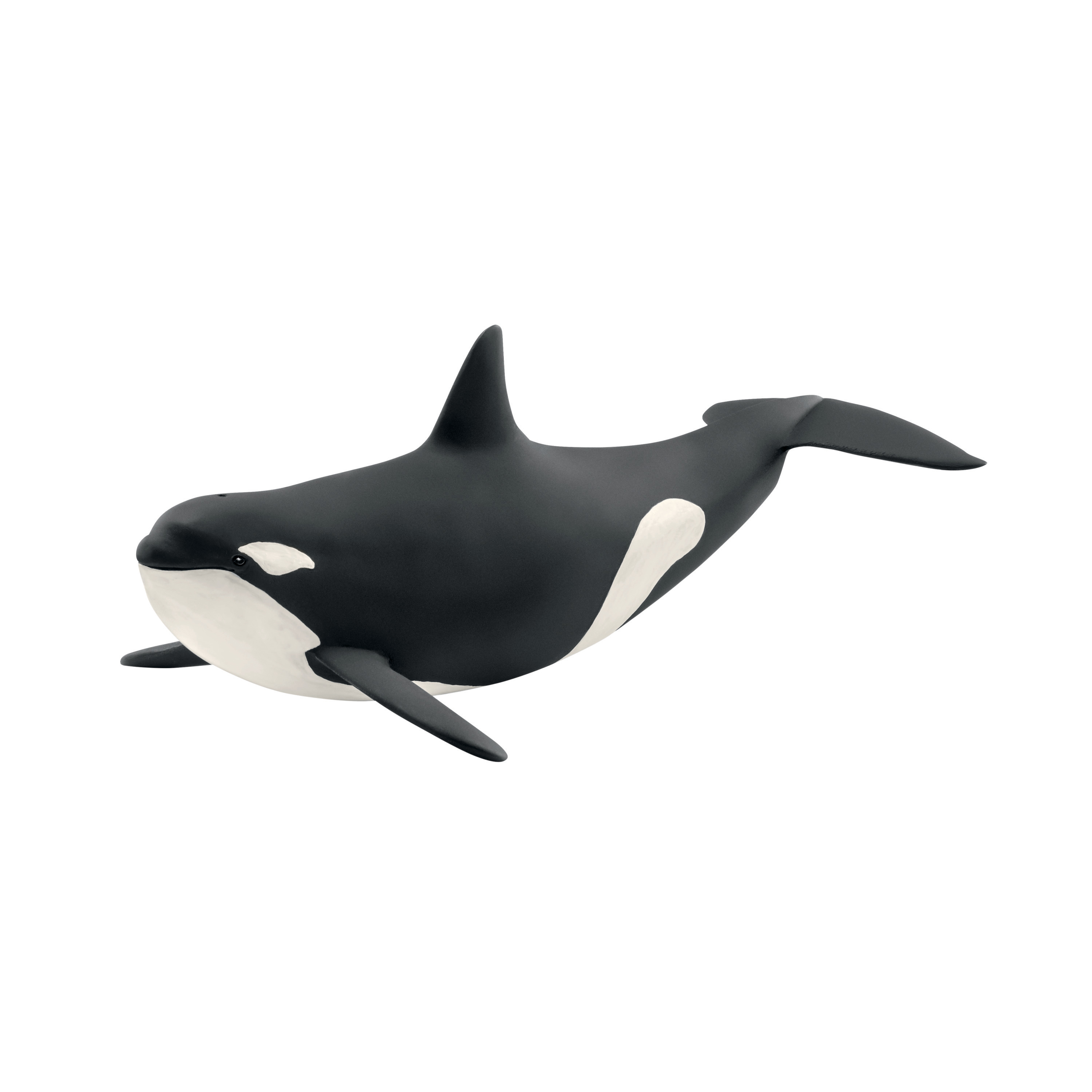 Les figurines Schleich sont toutes modélisées en détail et soigneusement peintes à la main ; elles assurent des jeux à forte valeur pédagogique. L’orque est un gros cétacé à dents de la famille des dauphins. Il est impossible de le confondre grâce à sa couleur noir et blanc. Les animaux qui nagent au-dessous de lui ne le détectent pas, car son ventre a la même couleur claire que la surface de l’eau. Vu d’en haut, il est quasiment impossible de distinguer son dos noir du sol marin.