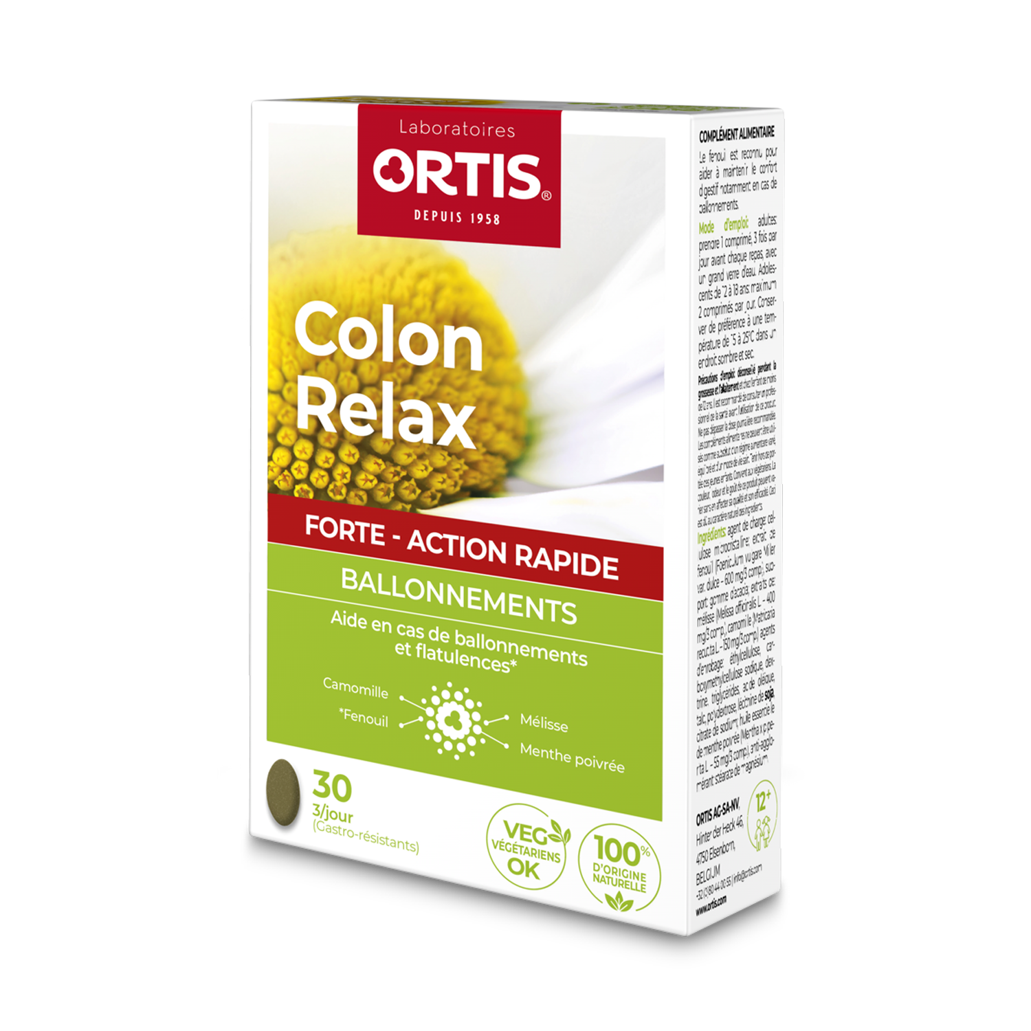 | Libellé | Ortis Colon Relax Forte 30 Comprimés - Ballonnements et flatulences - Laboratoires Ortis |