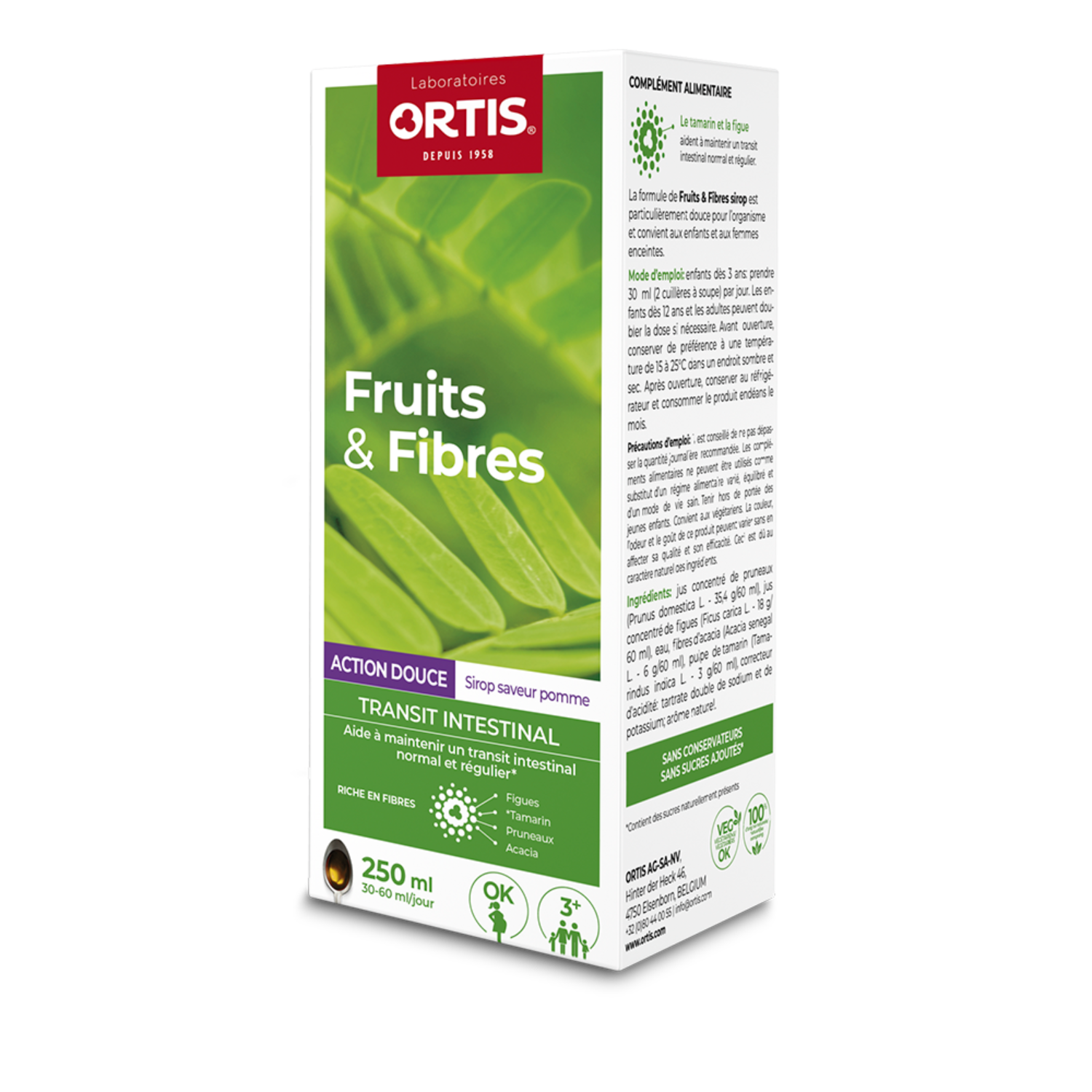 Ortis Fruits & Fibres Action Douce Sirop 250ml - Favorise le transit - Laboratoires Ortis