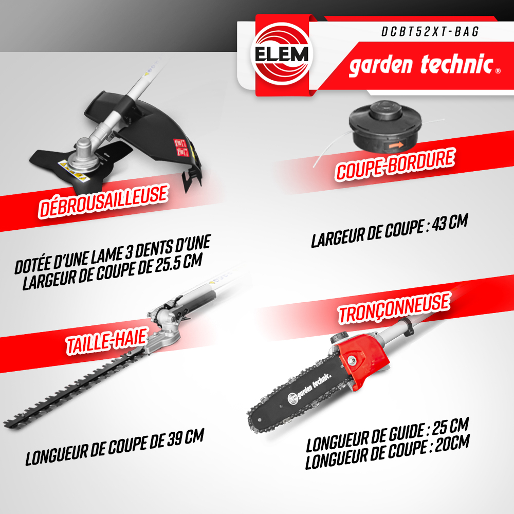 | Libellé | Outil Multifonctions 52Cc - 4 En 1 - Dcbt52Xt-Bag - Elem Garden - |
