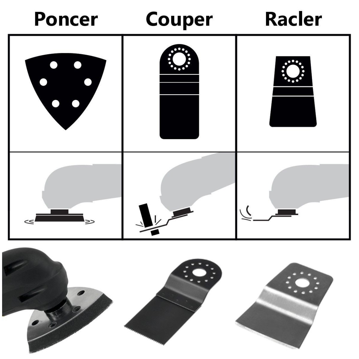 Plus produit Outil 3 en 1 idéal pour poncer, couper et racler.