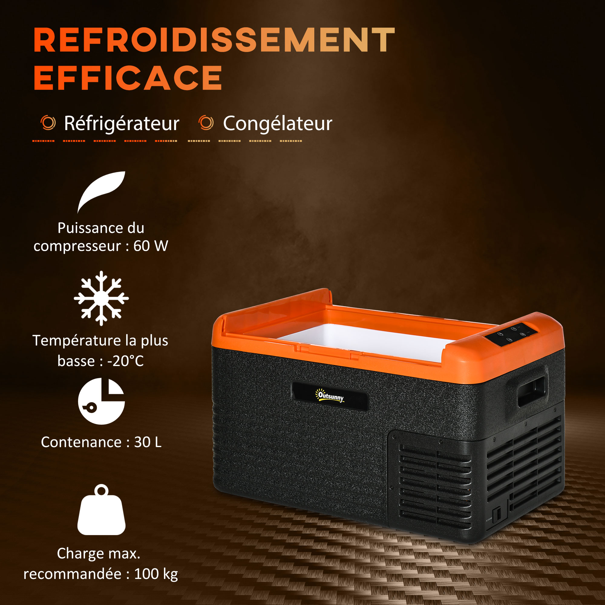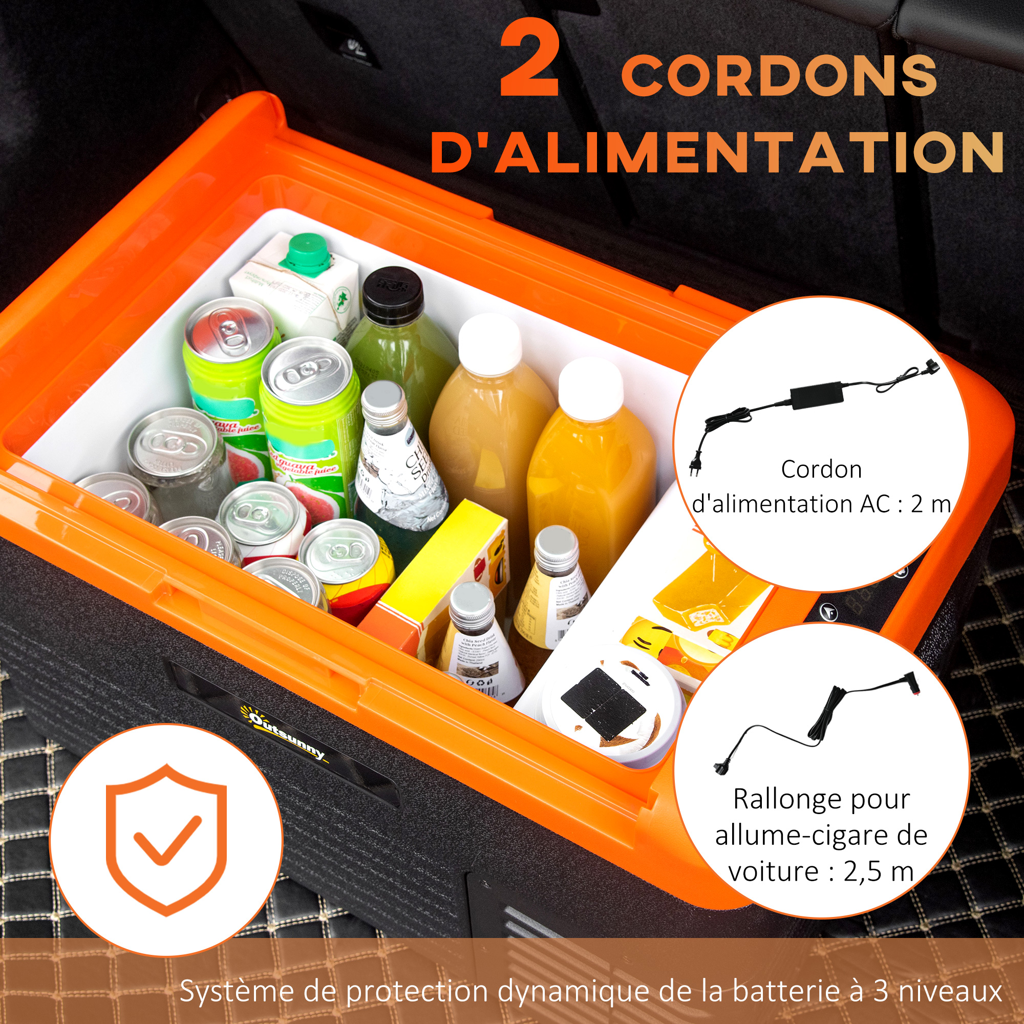 | Libellé | Outsunny Glacière électrique 30L portable, réfrigérateur congélateur avec poignées - dim. 58,7L x 36,5l x 36,8H cm orange et noir |