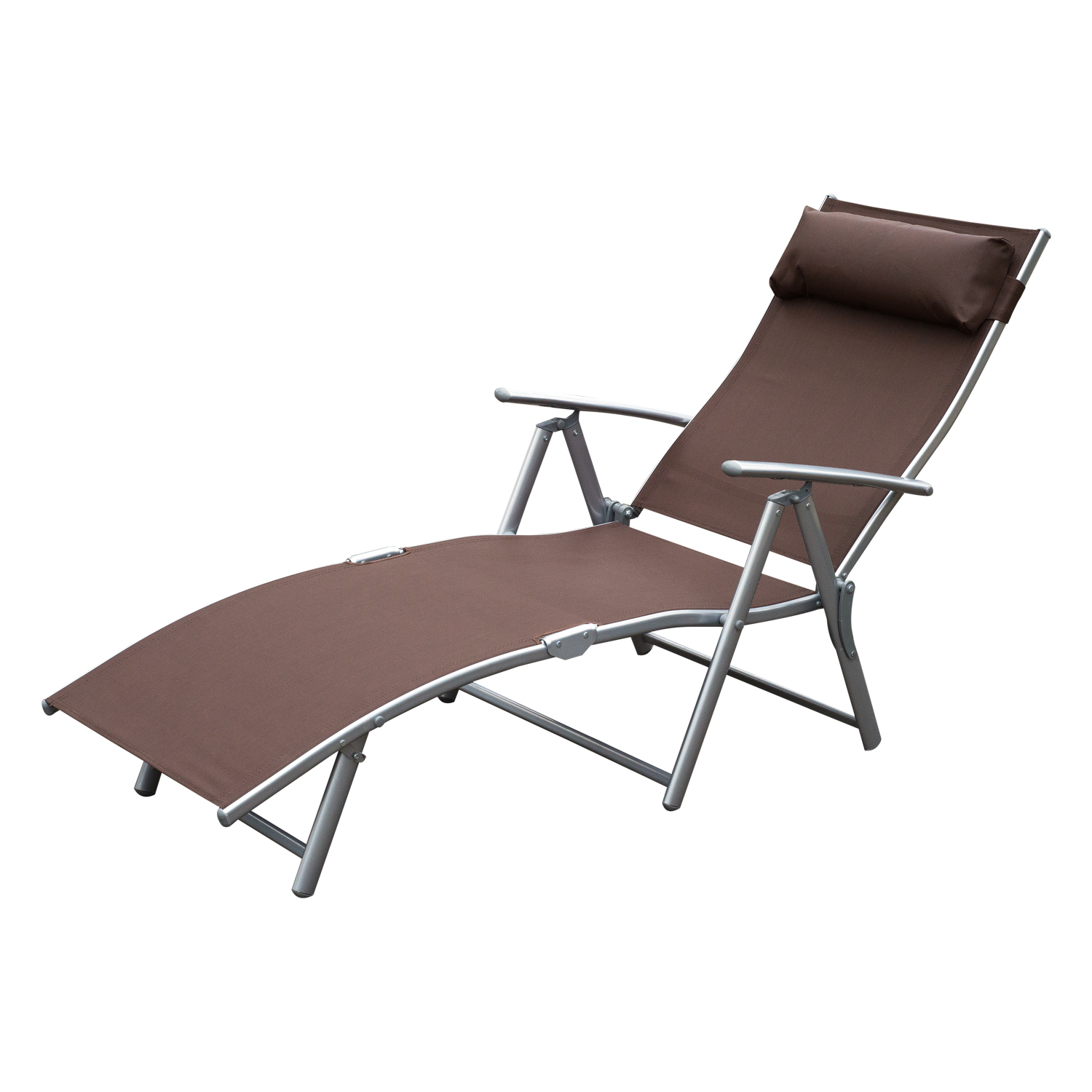 Outsunny transat chaise longue bain de soleil pliable dossier inclinable multi-positions têtière fournie