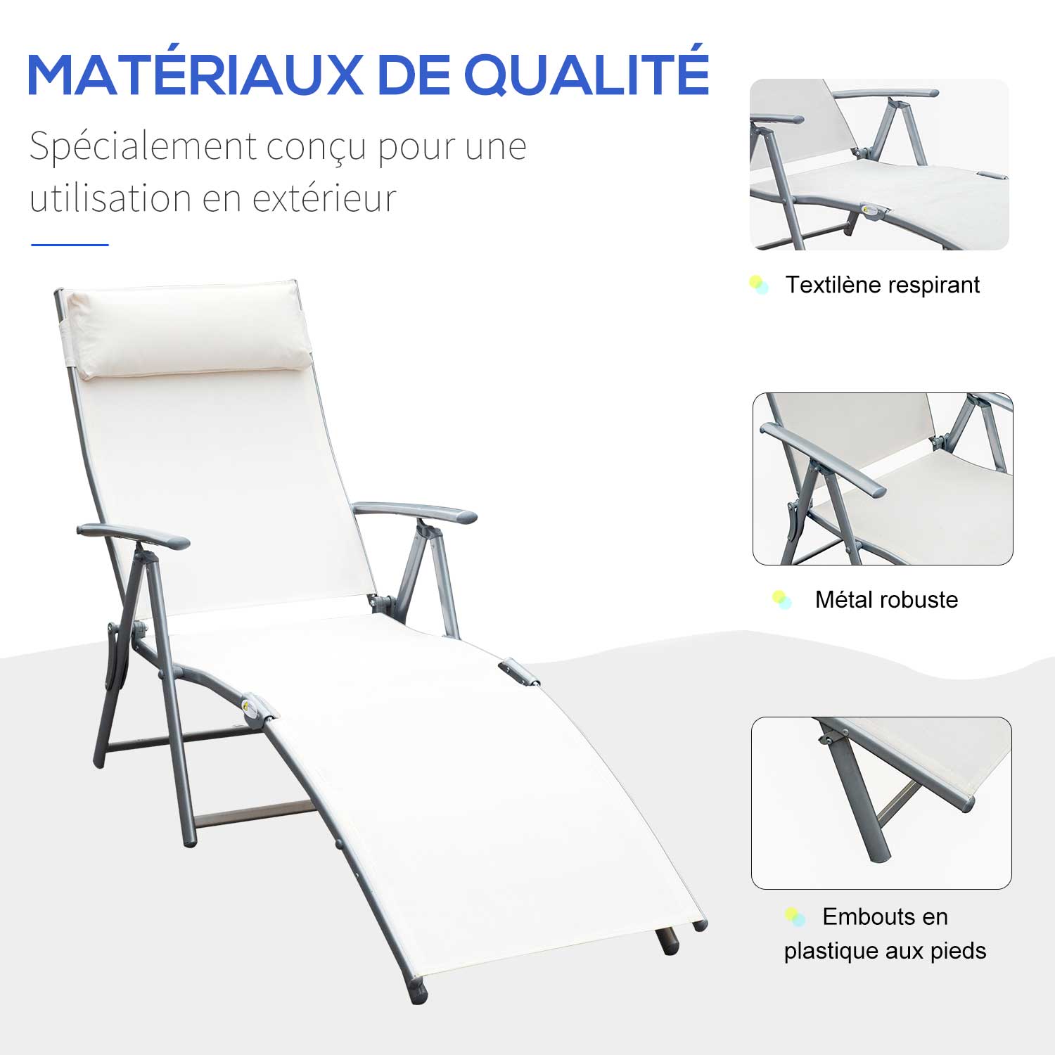 Outsunny transat chaise longue bain de soleil pliable dossier inclinable multi-positions têtière fournie