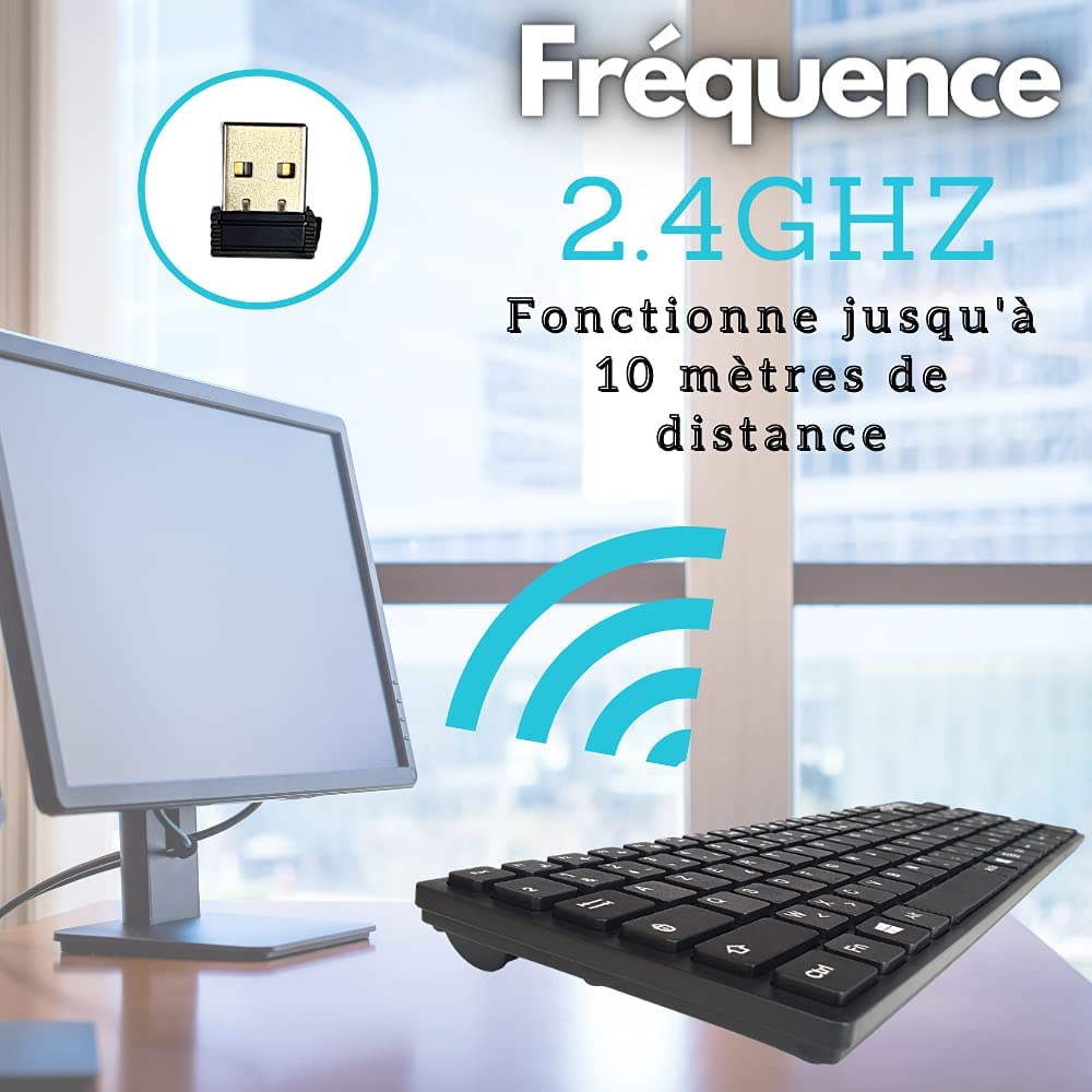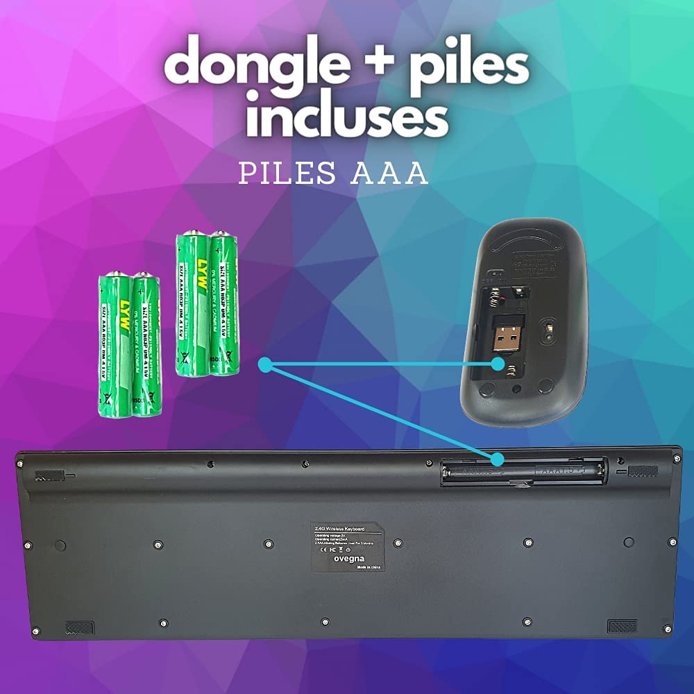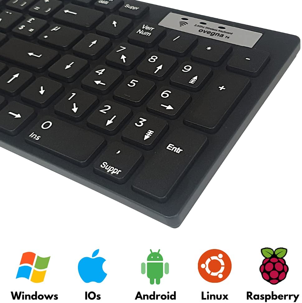 Ovegna T4 : Ensemble Clavier et Souris, sans Fil, Wireless 2.4Ghz, AZERTY, pour PC, Mini PC, Mac, SmartTV, Raspberry, Laptop, Android Box, sous Windows, Linux, MacOS, Android