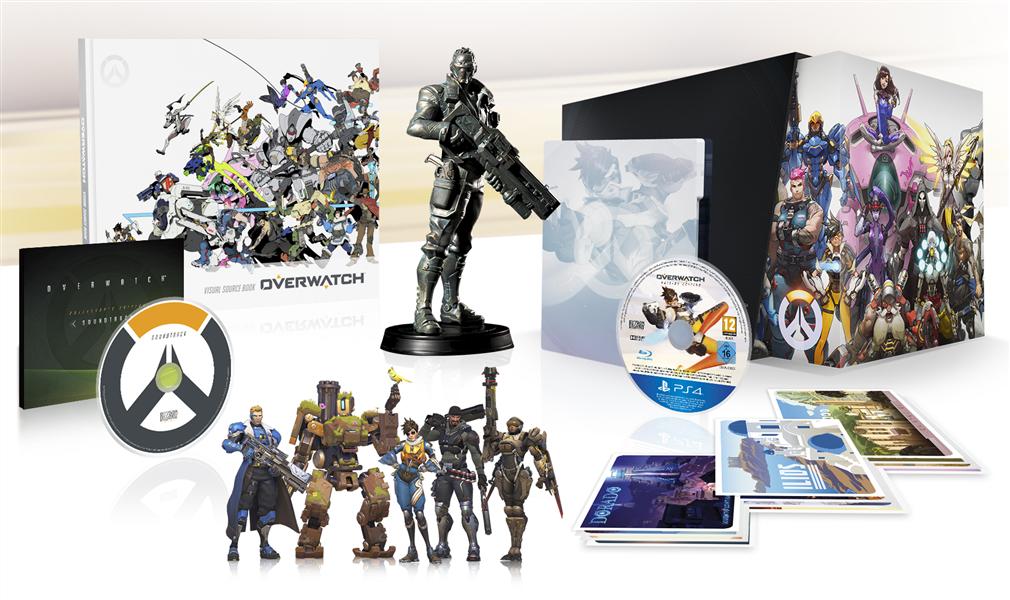 Contenu de l'édition Collector - Le jeu - 21 héros - 5 modèles : Reyes - Blackwatch (Faucheur), Morrison - Commandant des opérations (Soldat : 76), Bastion - Déclassé, Pharah - Chef de la sécurité, Tracer - Pilote du Sillage - Contenu Overwatch pour plusieurs jeux de Blizzard Entertainment : héros Tracer pour Heroes of the Storm, mascotte bébé Winston pour World of Warcraft, portraits en jeu pour StarCraft II, dos de carte Overwatch pour Hearthstone, Ailes d'Ange pour Diablo III -Statue de Soldat : 76 (env. 28 cm) - Boîtier de DVD Steelbook - Livre d'illustrations - Bande originale d'Overwatch.