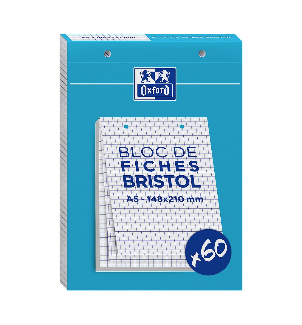 | Libellé | OXFORD Bloc de Fiches Bristol A5 Perforées Petits Carreaux 5mm 60 Fiches Collées Blanches |