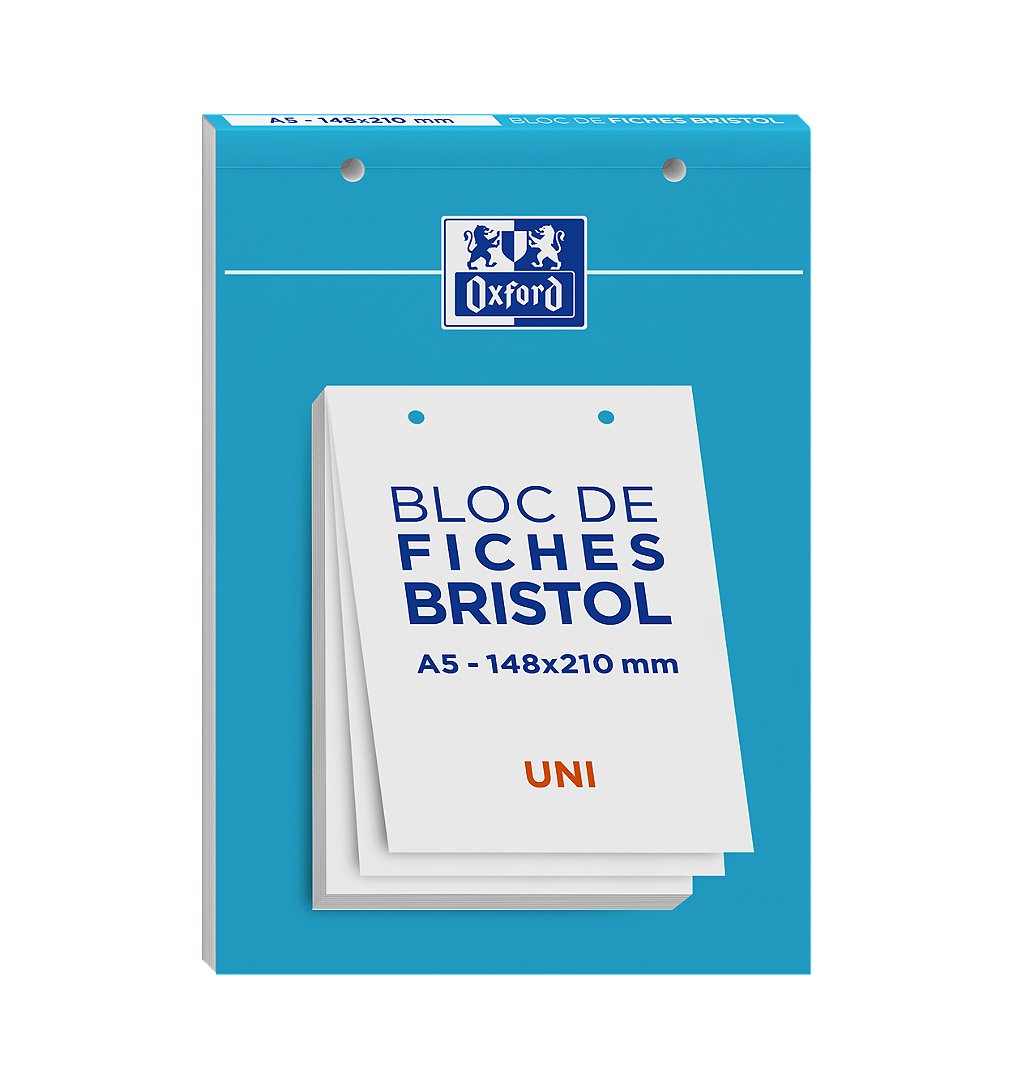 | Libellé | OXFORD Bloc de Fiches Bristol A5 Perforées Unies 30 Fiches Collées Blanches |