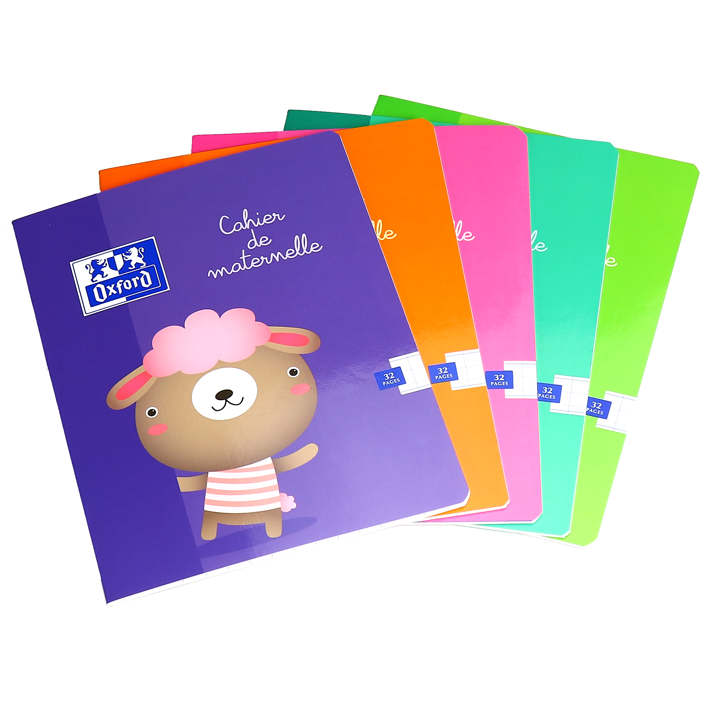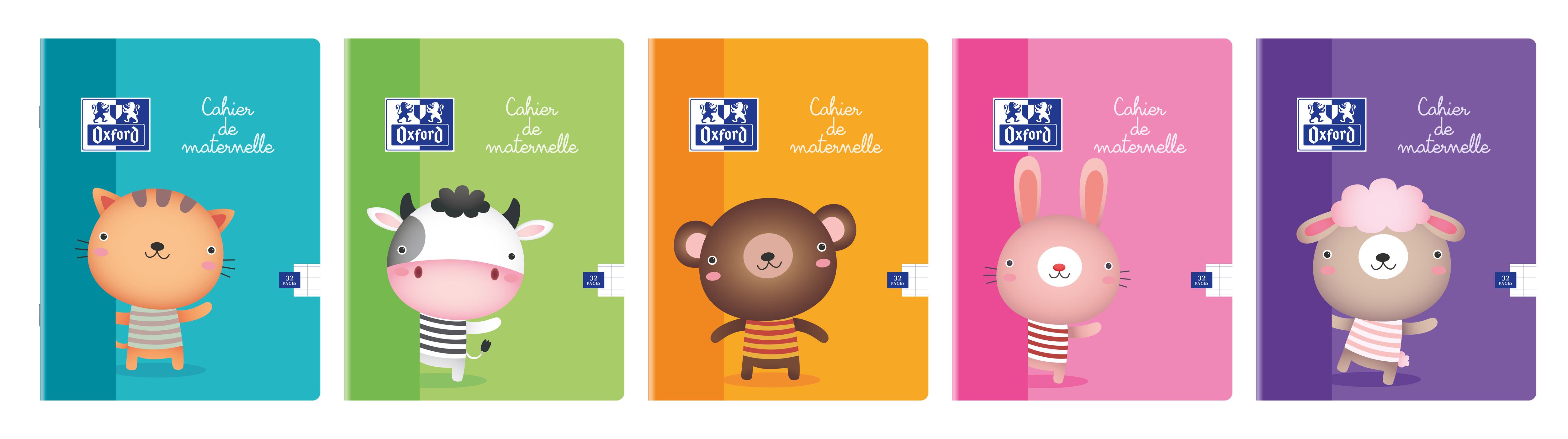 Les produits OXFORD Maternelle sont intemporels et iconiques, et ils vous donnent confiance pour exprimer votre personnalité et votre potentiel. Utiliser les produits de la gamme OXFORD Maternelle c'est l'assurance d'avoir fait le bon choix ! Déclinés dans un bel éventail de couleurs dynamiques, modernes et lumineuses les cahiers sont fabriqués à partir d'une carte recouverte d'un pelliculage brillant qui résiste dans le temps et garantit une longue durée de vie. Grâce à ses réglures développées pour l'apprentissage de l'écriture, OXFORD Maternelle est une référence dans l'accompagnement des tout-petits dès leurs premières années scolaires. OXFORD Maternelle, c'est aussi l'histoire d'un papier que l'encre ne traverse pas, d'une blancheur parfaite et au toucher extra-lisse. Autant d'éléments obtenus grâce à la qualité Optik Paper pour un confort d'écriture inégalable. Le cahier d'apprentissage agrafé OXFORD, à destination des élèves de maternelle, est spécialement étudié pour l'écriture des tout-petits. La réglure double ligne 3/10, semblable à la réglure grands carreaux Seyès, permet d'écrire les lettres plus facilement pour faciliter l'apprentissage de l'écriture. La réglure est en 2 couleurs pour apprendre à distinguer les interlignes et les lignes principales, essentielles pour l'écriture. Il offre 32 pages et il est disponible en petit format scolaire 17x22cm. Il est décliné en 5 décors enfantins avec des animaux, dans des coloris doux.