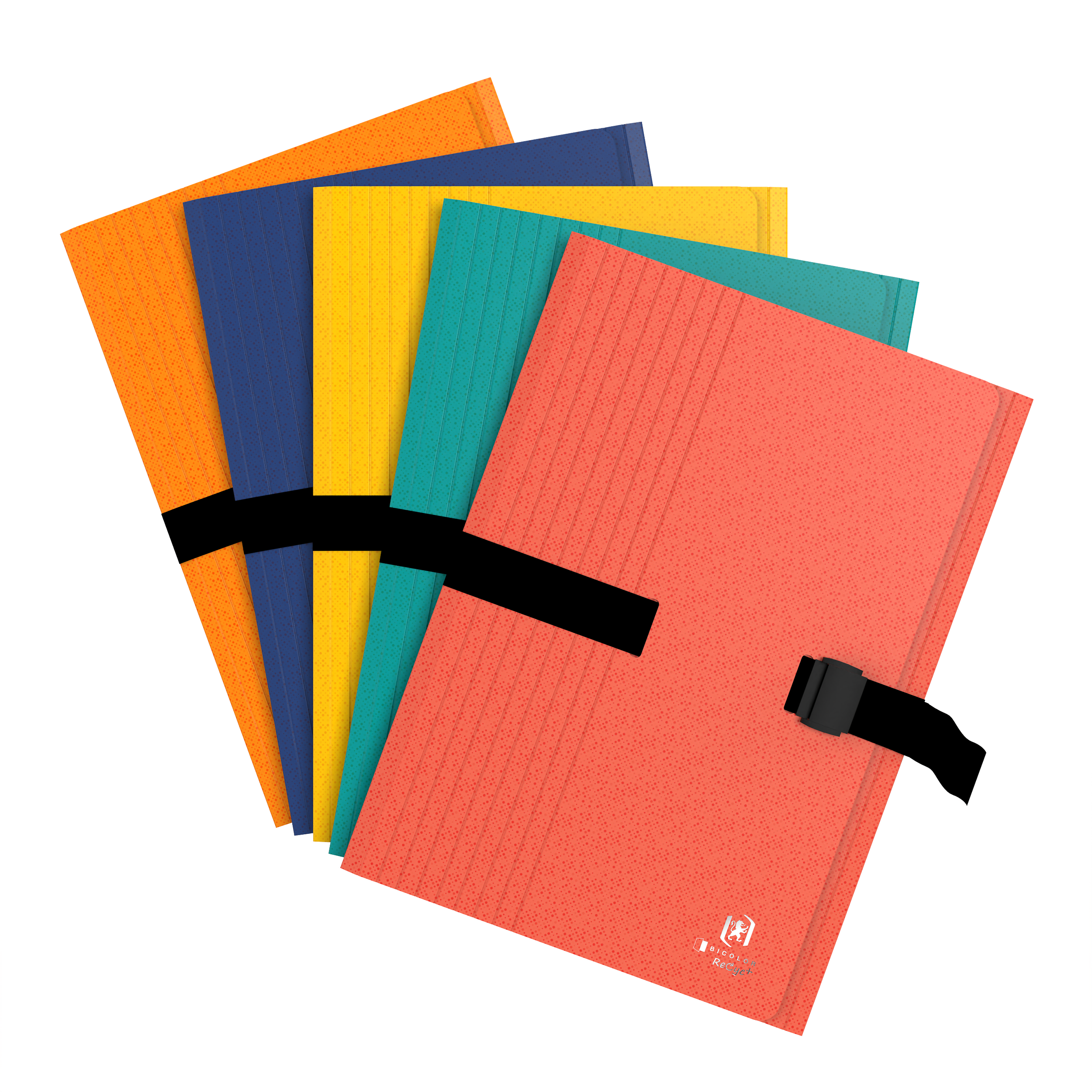 Oxford Bicolor Recyc+, des produits de classement recyclés...qui n’en ont pas l’air ! Look affirmé, décor moderne, ils se déclinent en associations bicolores de couleurs vives très contrastées, qui invitent au voyage. Les produits sont fabriqués à partir d'une carte PEFC 100% recyclée et recyclable sans compromis sur la résistance. En effet, ils bénéficient de l'innovation Multi'Strat, procédé de fabrication exclusif qui complexe plusieurs couches de papier pour garantir résistance et tenue. La chemise à sangle OXFORD Bicolor Recyc+, au format A4, offre un dos extensible jusqu'à 10 cm pour une grande capacité de rangement de 1000 feuilles environ. Vos documents seront sécurisés et bien maintenus grâce à ses rabats et sa fermeture par clip et sangle noirs. Cette chemise cartonnée extensible est proposée en coloris aléatoire parmi 5 associations de couleurs : bleu roi/jaune, rouge/vert, turquoise /bleu roi, jaune/rouge, orange/turquoise.