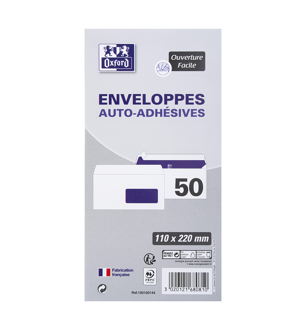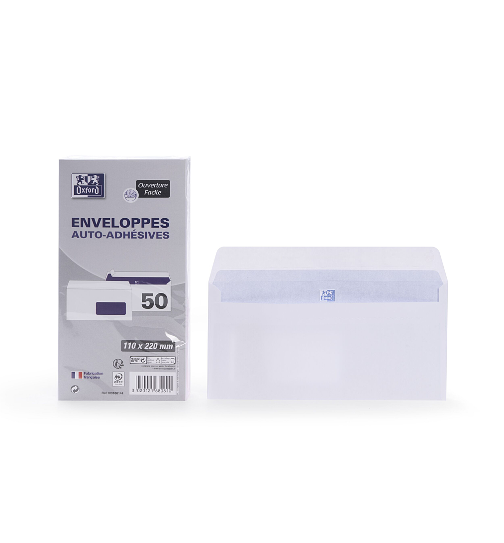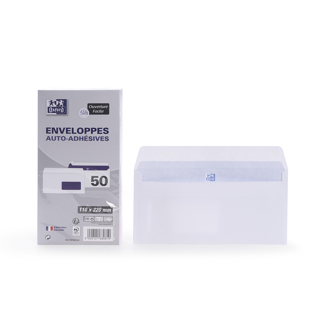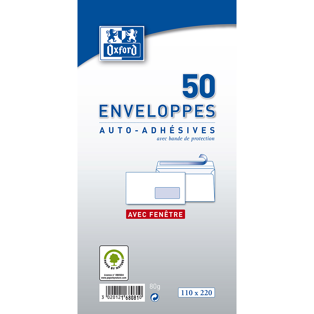 | Libellé | OXFORD Lot de 50 Enveloppes Auto-adhésives à Fenêtre 11x22cm Papier 80g Blanc |