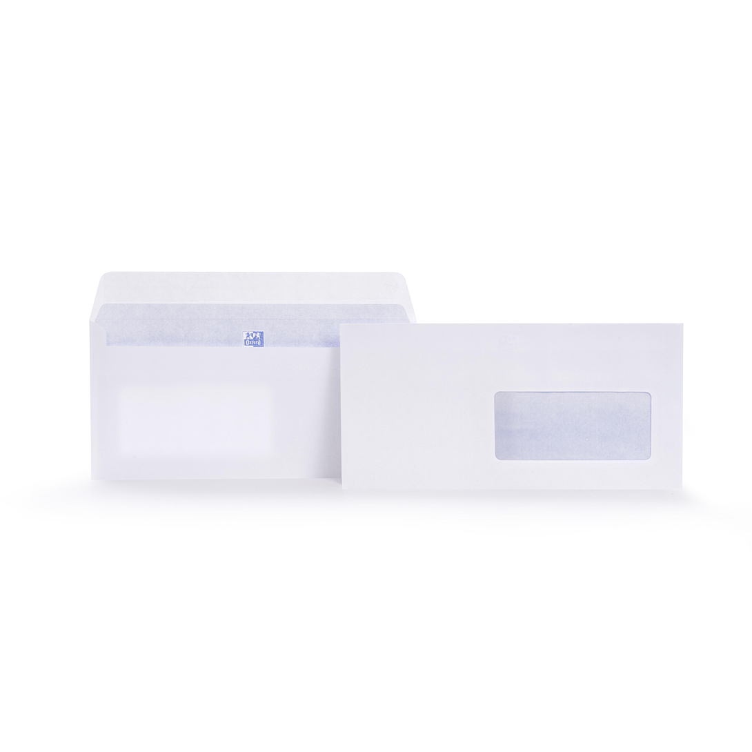 OXFORD Lot de 50 Enveloppes Auto-adhésives à Fenêtre 11x22cm Papier 80g Blanc