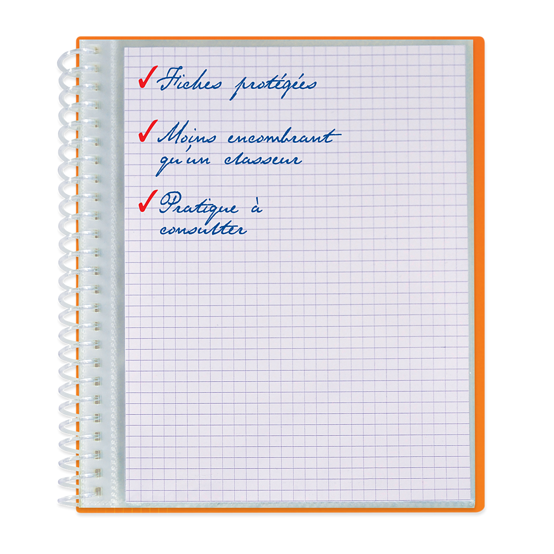 OXFORD School life : équipé pour le meilleur. Enfin une gamme rassemblant les outils scolaires vraiment essentiels et bénéficiant de réelles avancées en matière d'ergonomie, conçue pour la réussite et le bien-être des élèves. Avec nos innovations School Life, vous allez aimer vous organiser pour toute l'année scolaire. Le protège-documents School Life, de format A5, a été spécialement conçu pour ranger ses fiches bristol de révision et les emporter partout avec soi ! Les fiches, bien rangées dans les pochettes sont parfaitement protégées des taches ou des déchirures. Plus compact qu'un classeur, ce porte-vues au format portrait respecte l'orientation utilisée lors de la rédaction des fiches et rend leur lecture plus facile. La reliure à spirale permet une ouverture à 360° pour un encombrement réduit et un maximum de confort lors de son utilisation. Ainsi ce rangement pour fiches A5 est parfaitement adapté à un usage nomade, à l’extérieur, et dans les transports. Il contient 40 pochettes lisses et se décline en 5 couleurs translucides vives : Vert Anis, Orange, Rouge, Violet, Bleu Turquoise et un coloris noir opaque.