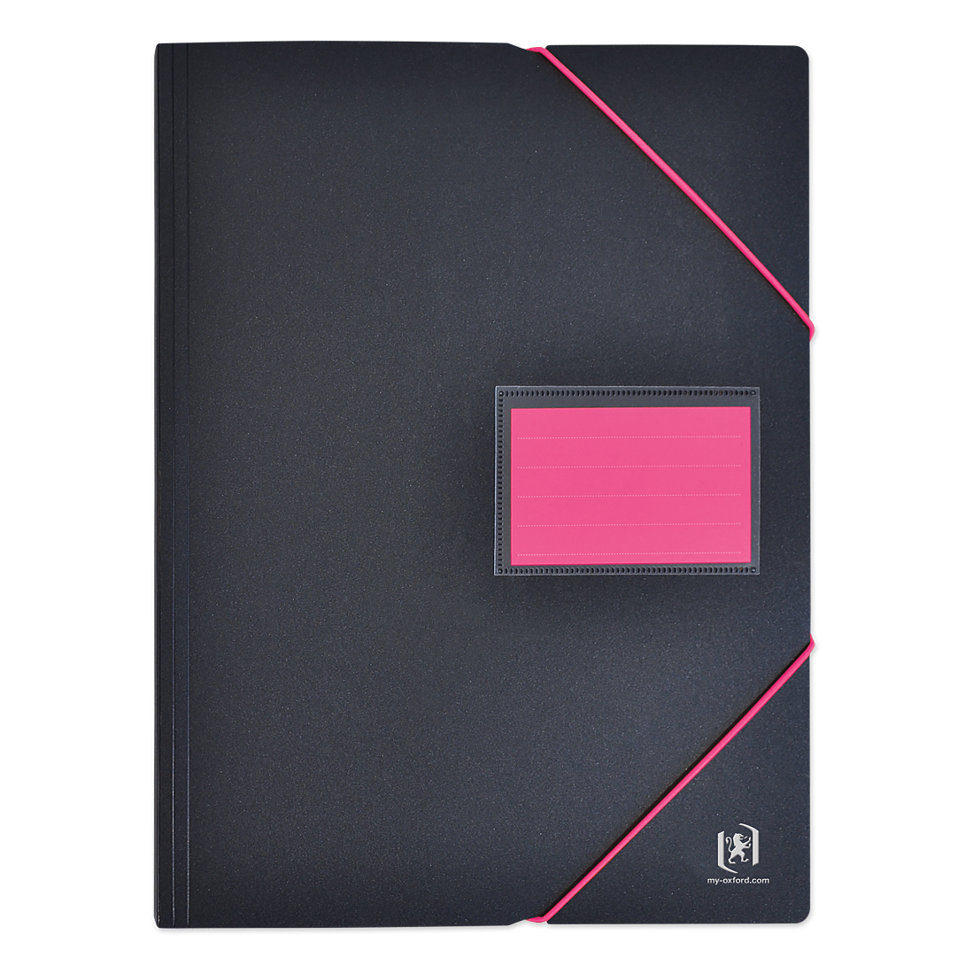 OXFORD Students : Vivre à fond, tout gérer. Avec Students, vous êtes enfin paré pour gérer votre vie d'étudiant : cours, stages, papiers administratifs… Nous concevons des outils intelligents, flexibles, tout-en-un et pensés pour votre rythme de vie intense. Composés de polypro noir vitaminé d'orange, de vert, de jaune, de turquoise ou de rose, ces produits de classement s'adaptent à votre environnement en toutes circonstances. Enfin des solutions simples pour vivre à fond en toute liberté... Et réussir à tout gérer. Le protège-documents Students A4, fabriqué en France, est équipé d'une couverture rigide pour une meilleure résistance et d'une fermeture par élastique, qui sécurise le contenu lors d'un usage nomade. La sobriété de la couverture est rehaussée par les touches de couleurs contrastées apportées par l'élastique et la grande étiquette d'identification. Les pochettes parfaitement lisses et transparentes facilitent la lisibilité. Leur ouverture partielle en angle permet une meilleure insertion des documents. Ce porte-vues est également doté d'une pochette plastique de rangement pour un stockage rapide et temporaire et contient 60 pochettes (120 vues). Il est proposé en coloris aléatoire parmi 5 couleurs : Noir/Rose, Noir/Bleu, Noir/Orange, Noir/Vert, Noir/Jaune