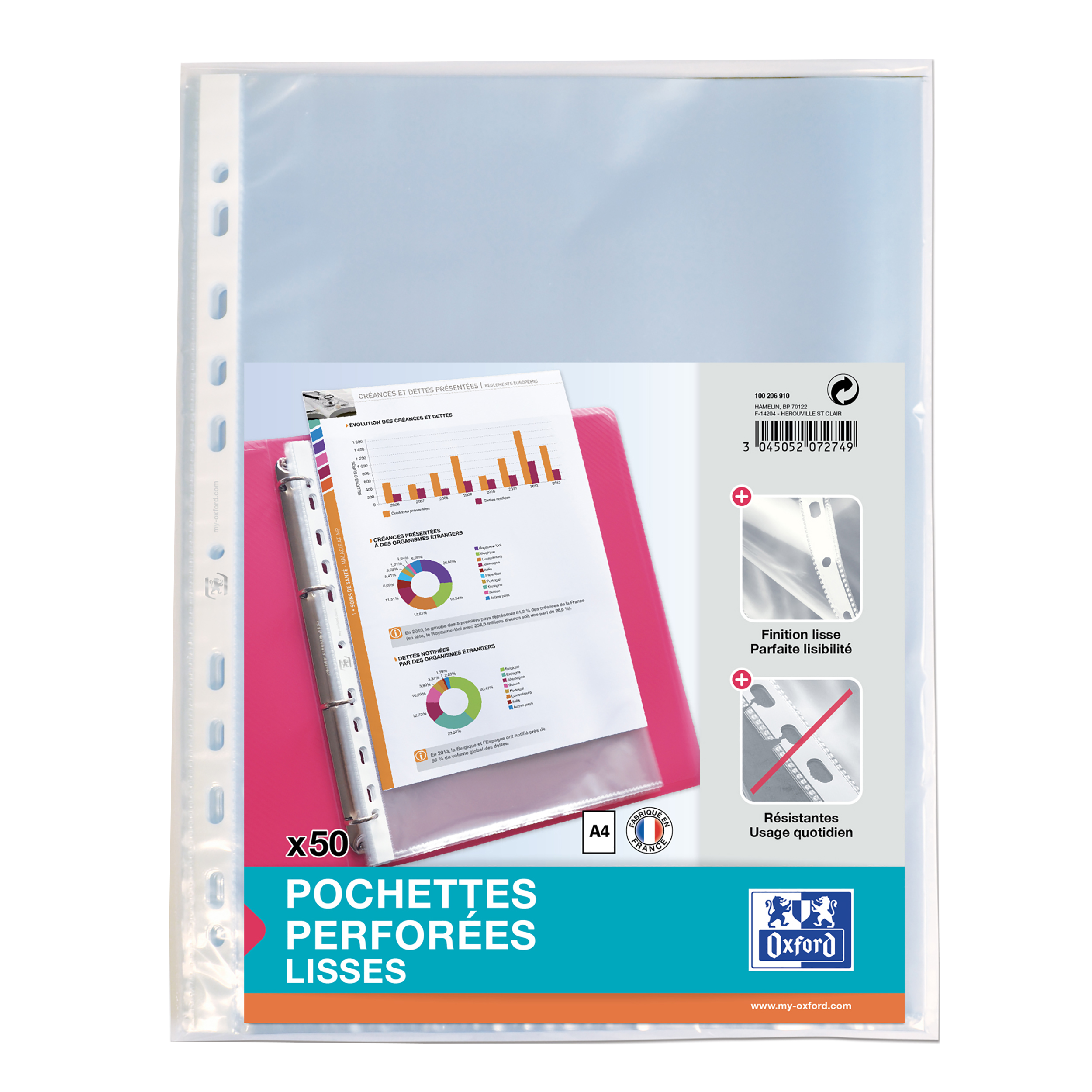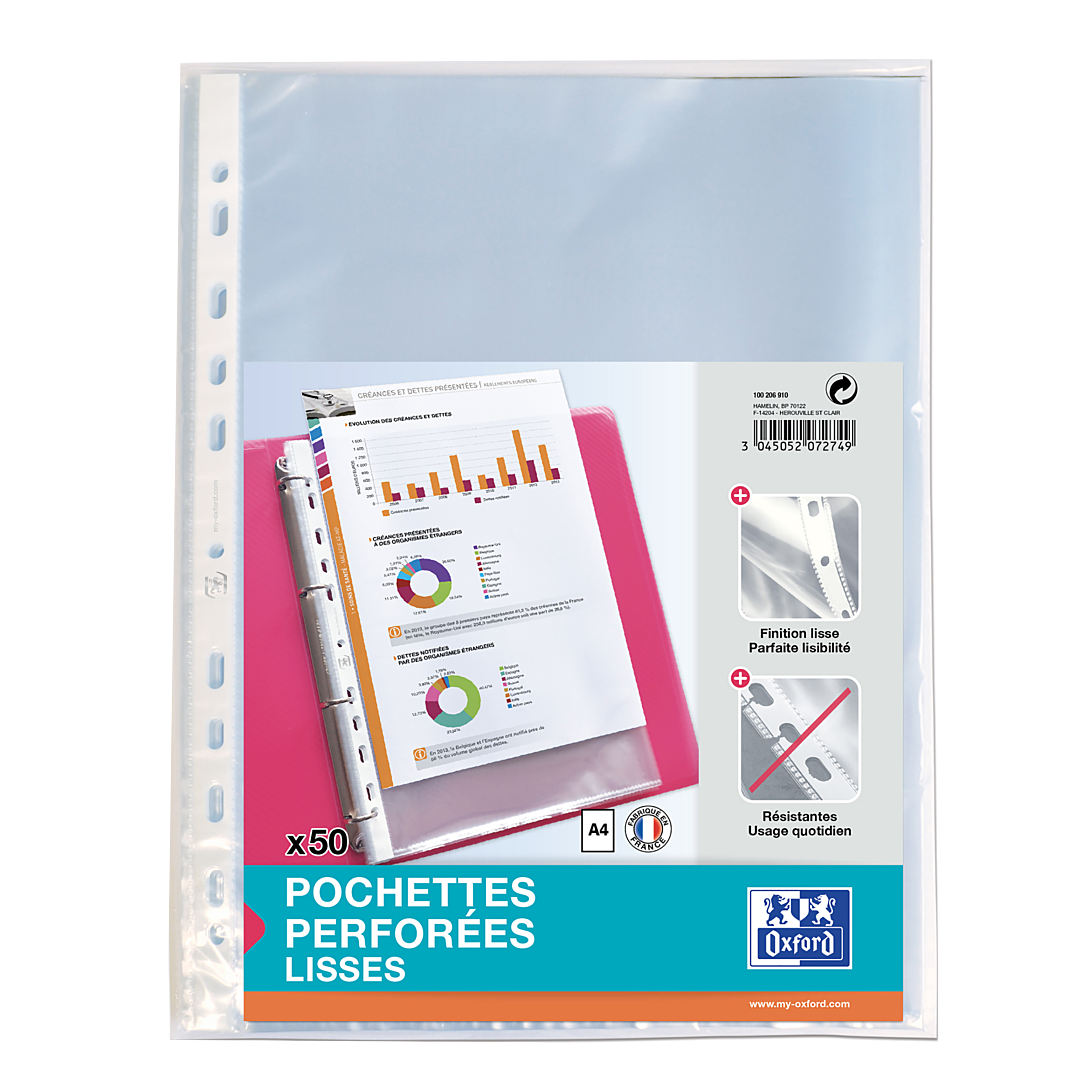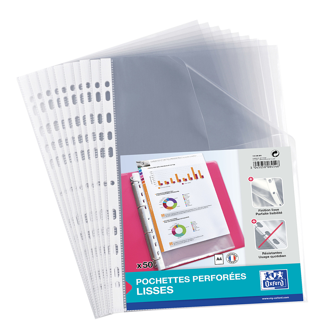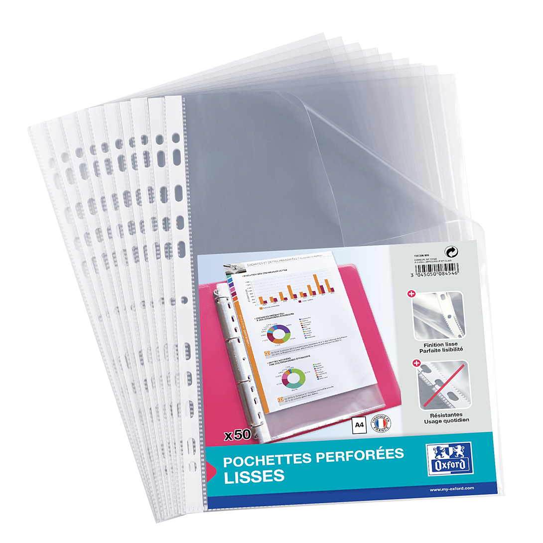 | Libellé | OXFORD Sachet de 50 Pochettes Perforées A4 Polypro Lisse Epaisseur 5/100ème Incolore |
