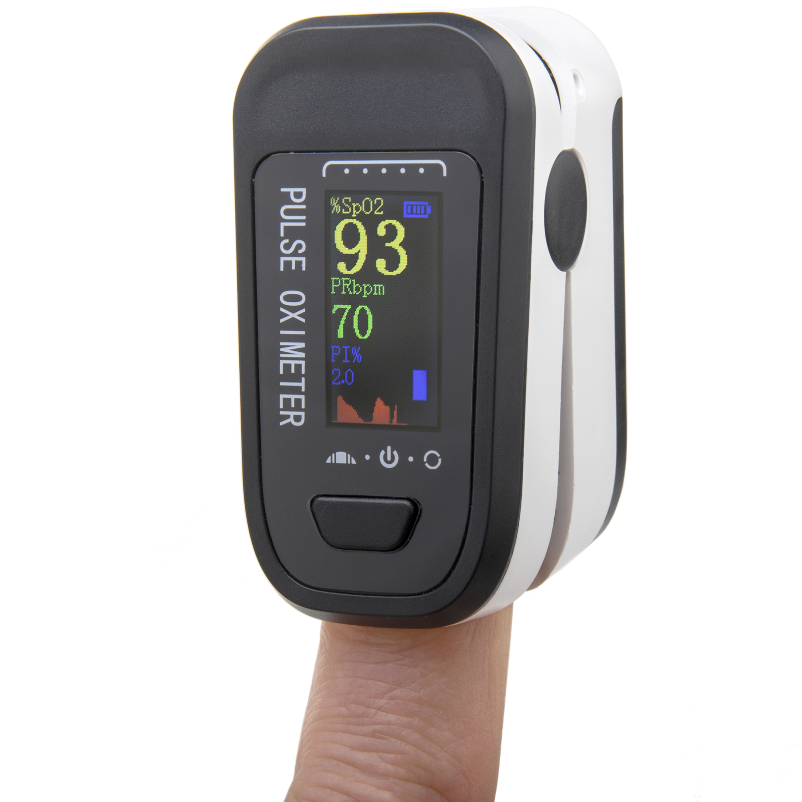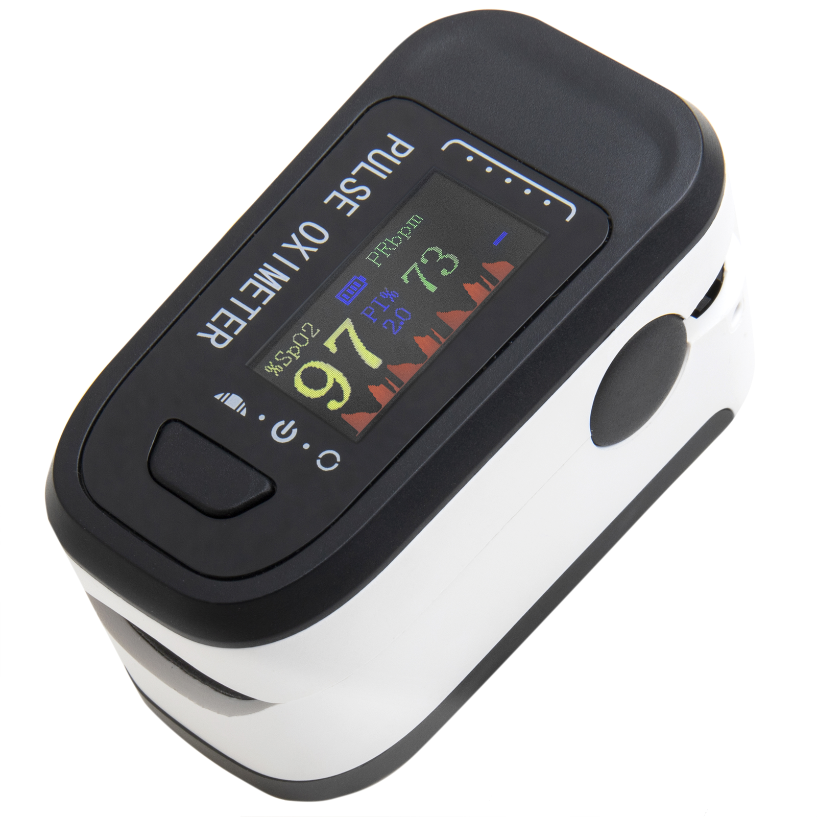 Oxymètre de pouls ou oxymètre de pouls conçu pour mesurer la saturation en oxygène et la fréquence cardiaque. De taille compacte, ce qui lui permet d'être emporté n'importe où, idéal pour fournir des informations de santé en temps réel. Son fonctionnement simple en fait un outil de mesure pour tous types de personnes, non seulement pour le contrôle médical mais aussi pour les sportifs, sportifs qui ont besoin d'informations instantanées sur leurs constantes. spécifications Oxymètre de doigt avec indicateur de fréquence cardiaque et de saturation en oxygène dans le sang. Il dispose d'un écran TFT couleur rétroéclairé, avec une rotation d'image à 360 °, ce qui vous permet de voir facilement les résultats dans n'importe quelle direction. L'écran affiche trois valeurs de mesure: la saturation en oxygène du sang (SpO2), la fréquence cardiaque (PPM) et l'indice de perfusion (PI) en temps réel. Son fonctionnement est simple, il suffit d'allumer l'appareil, d'insérer votre doigt dans le compteur et d'attendre environ 6 secondes pour qu'il commence à afficher la mesure prise. Système de serrage des doigts réglable, convient aux enfants et aux adultes. Idéal pour les femmes enceintes, les personnes âgées, les personnes souffrant de problèmes cardiovasculaires ou respiratoires qui ont besoin de connaître leur taux d'oxygène dans le sang ou leurs pulsations. Il est également idéal pour surveiller votre santé à la maison ou pour les sportifs, cyclistes, alpinistes etc. Appareil portable et léger, sa taille compacte est idéale pour être transporté n'importe où dans votre sac, sac à dos ou poche. Comprend un système d'arrêt automatique si le doigt n'est pas détecté après 6 secondes. Pour des mesures plus précises, il est recommandé d'utiliser l'oxymètre au repos. Plage de fréquence cardiaque de 30 bpm à 250 bpm. Puissance de la led rouge 660nm. Puissance LED infrarouge 880nm. Plage de mesure de l'oxygène sanguin: 0 ~ 100% + - 1%. Précision de mesure de l'oxygène sanguin: 70 ~ 100% + -2%. Il fonctionne avec 2 piles AAA (non incluses).