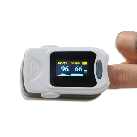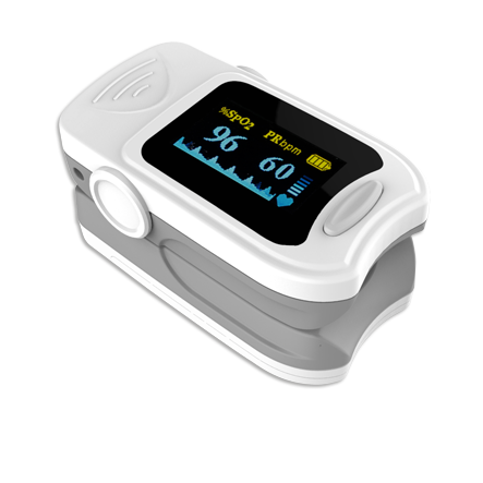 Pour le diagnostic et le monitorage de courte à moyenne durée - Écran couleur OLED - Faible consommation d'énergie Conforme à la norme ISO internationale 80601 Oxymètre saturomètre digital OXY220 avec écran couleur OLED avec repère visuel et sonore des battements de cœur, baregraphe et courbe pléthysmographique. 4 directions d'affichage (2 horizontales avec courbe à gauche ou à droite, 2 verticales). Faible consommation d'énergie, autonomie 600 mesures avec des piles neuves. Mesure précise et rapide du saturomètre (SpO2) et de la fréquence cardiaque. Pour une utilisation chez l'enfant et l'adulte (épaisseur de doigt entre 8 et 25,4 mm). - Utilisation facile via un seul bouton. - Écran couleur OLED: 24 x 13 mm. - Affichage immédiat SPO² et fréquence cardiaque. - Affichage bargraphe SpO². - Courbe pléthysmographique. - Repère visuel et sonore des battements de cœur. - 4 directions d'affichage. - Plage de mesure de saturométrie de 70 à 100%. Précision +/- 2%. - Affichage de la fréquence cardiaque de 25 à 250 bpm. Précision +/- 3bpm. - Arrêt automatique après 8 secondes d'inactivité. - Fonctionne avec 2 piles AAA (fournies). - Autonomie: jusqu'à 600 mesures. - Indicateur de batterie faible. - Coloris: blanc et gris. Dimensions : longueur 63 x Hauteur 31 x largeur 37 mm. Poids : 54 g (avec piles). L'oxymètre saturomètre est livré avec dragonne, 2 piles AAA et un mode d'emploi en Français.