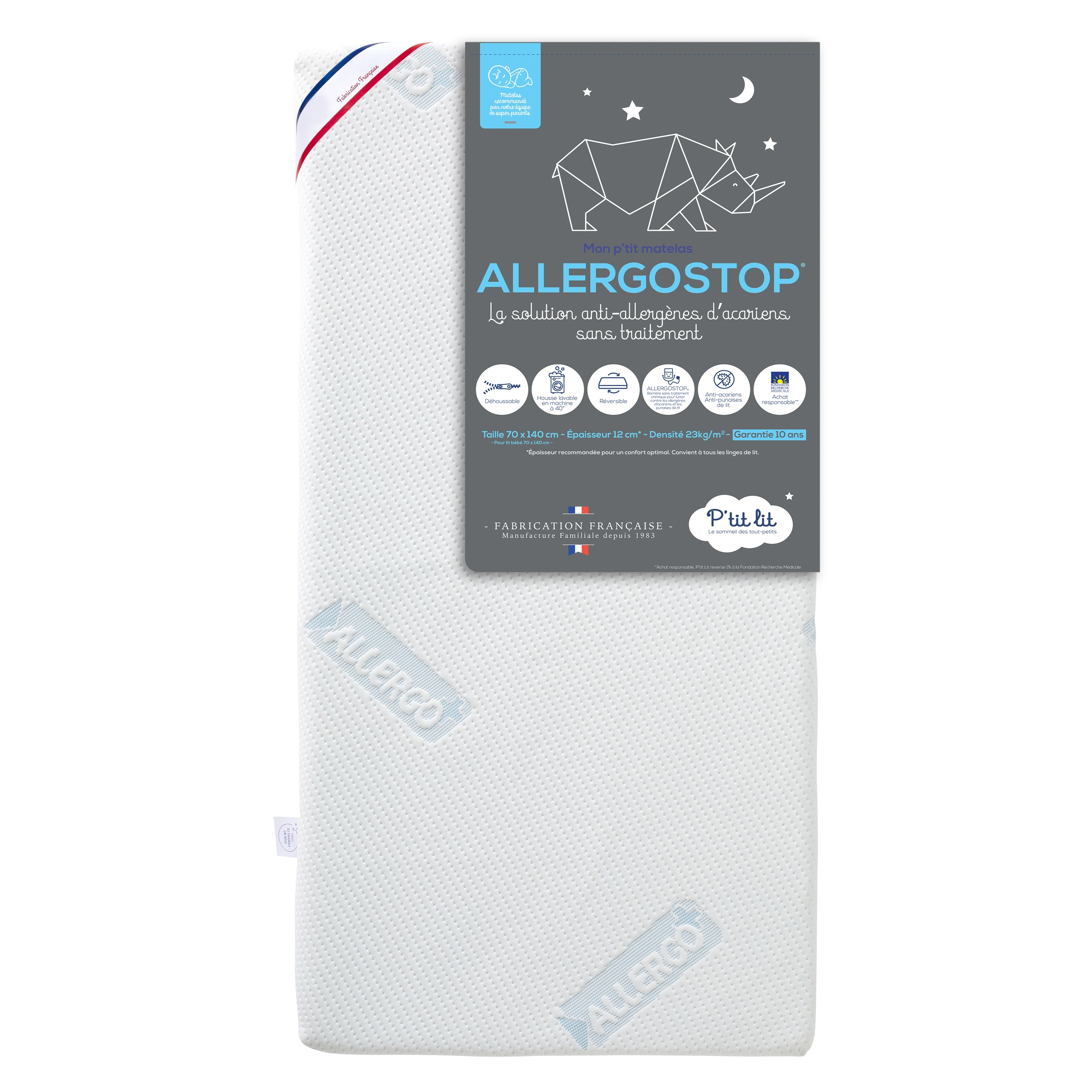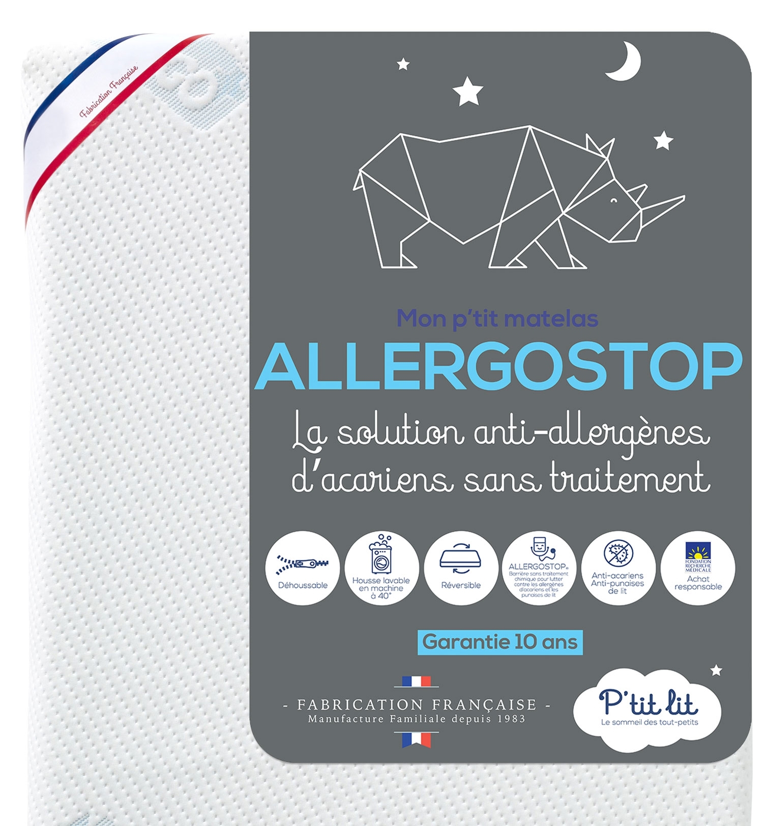 Matelas conseillé pour tous les enfants souffrant d'allergies, d'asthme ou d'eczéma, le p'tit ALLERGOSTOP sera votre meilleur allié pour aider bébé à retrouver un sommeil plus sain et sans aucun traitement chimique.