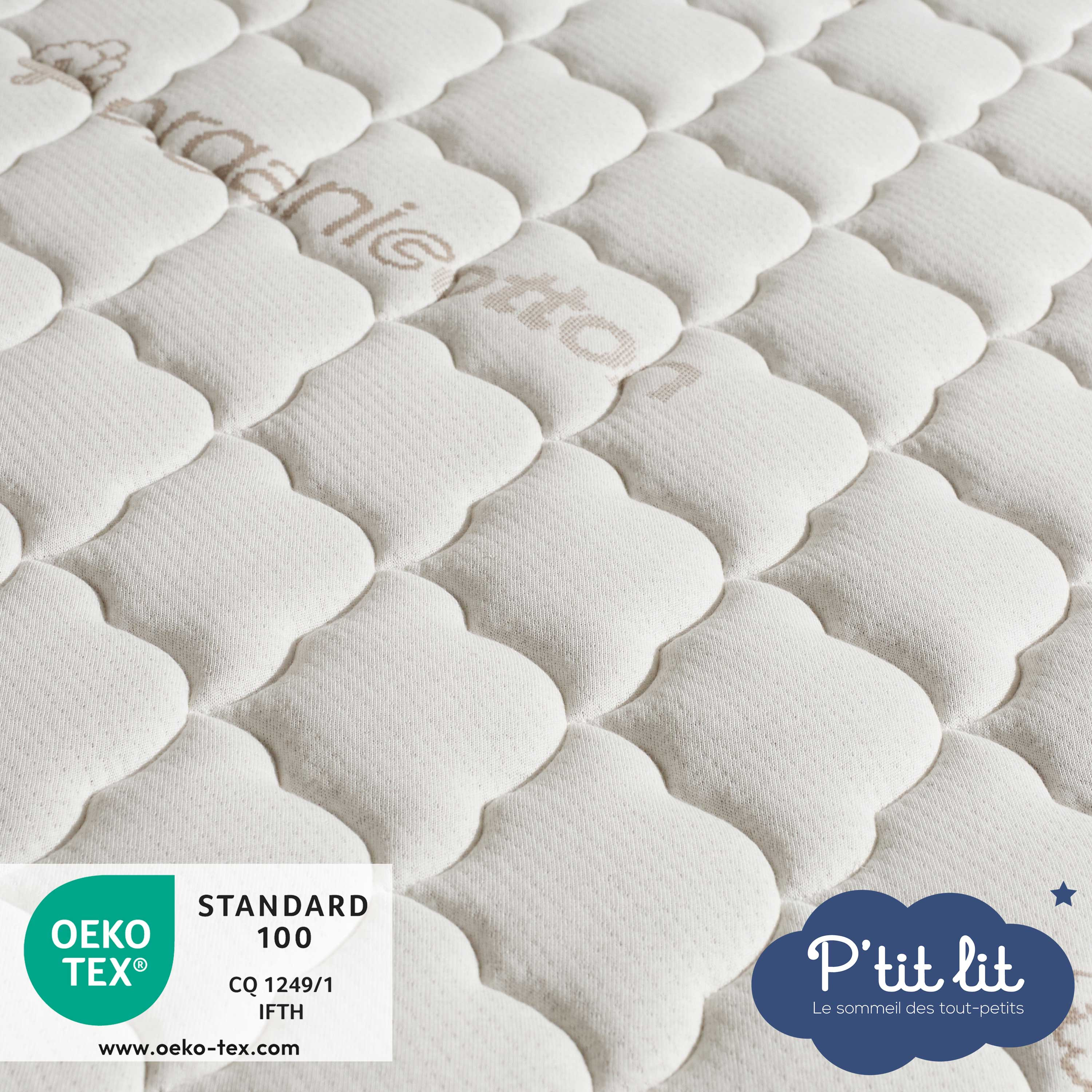 Sans aucun traitement chimique, ce p'tit matelas COTON BIO assure ainsi à votre enfant un sommeil sain et naturel.