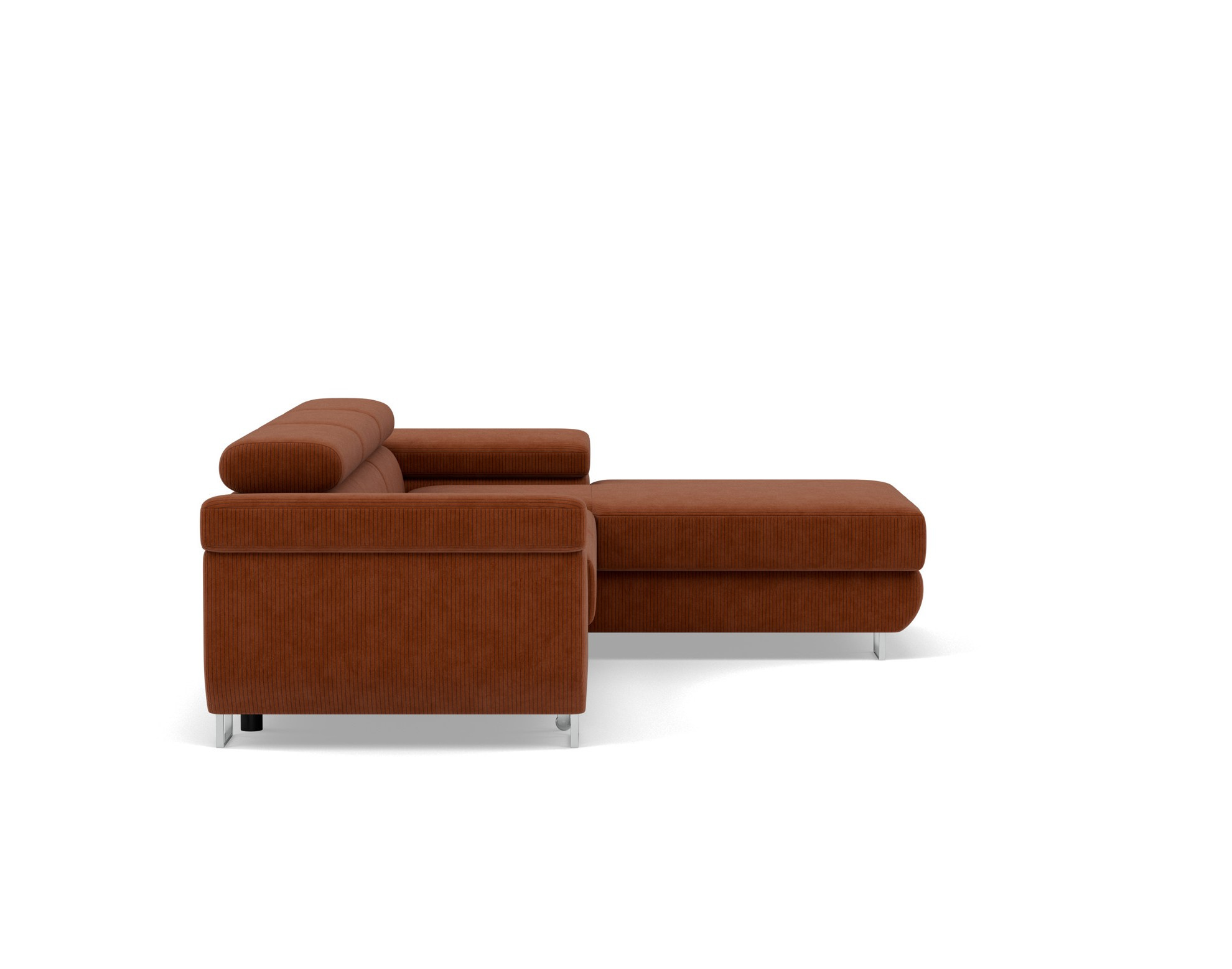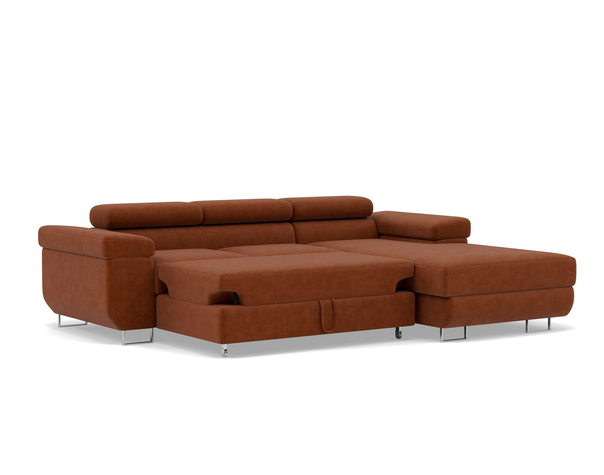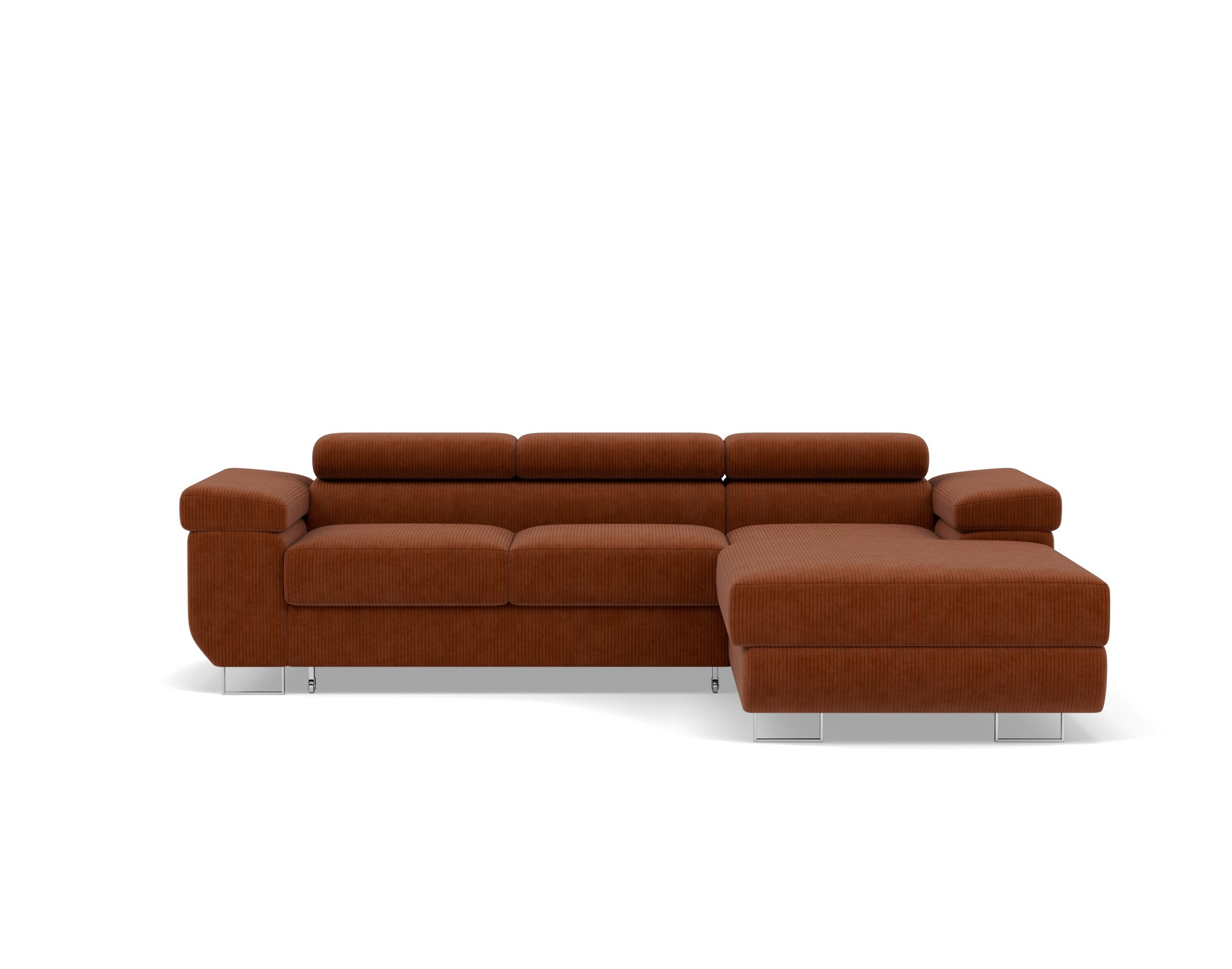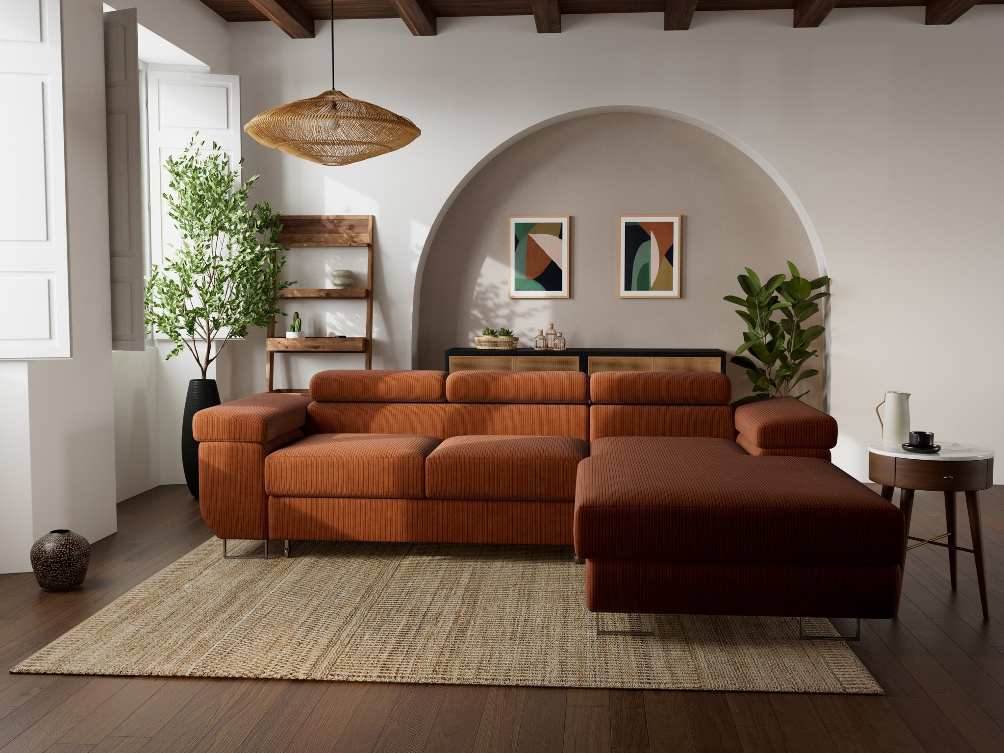 Pablo - canapé d'angle droit - 6 places - convertible avec coffre et têtières réglables - en velours côte