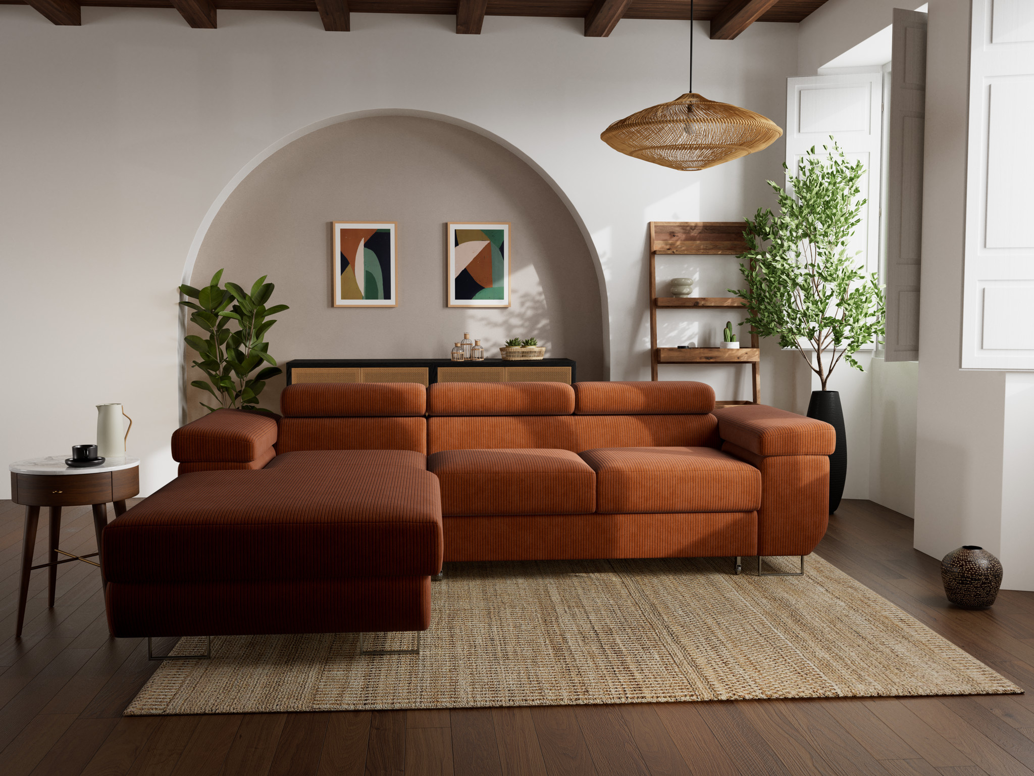 | Libellé | Pablo - canapé d'angle gauche - 6 places - convertible avec coffre et têtières réglables - en velours côtelé |