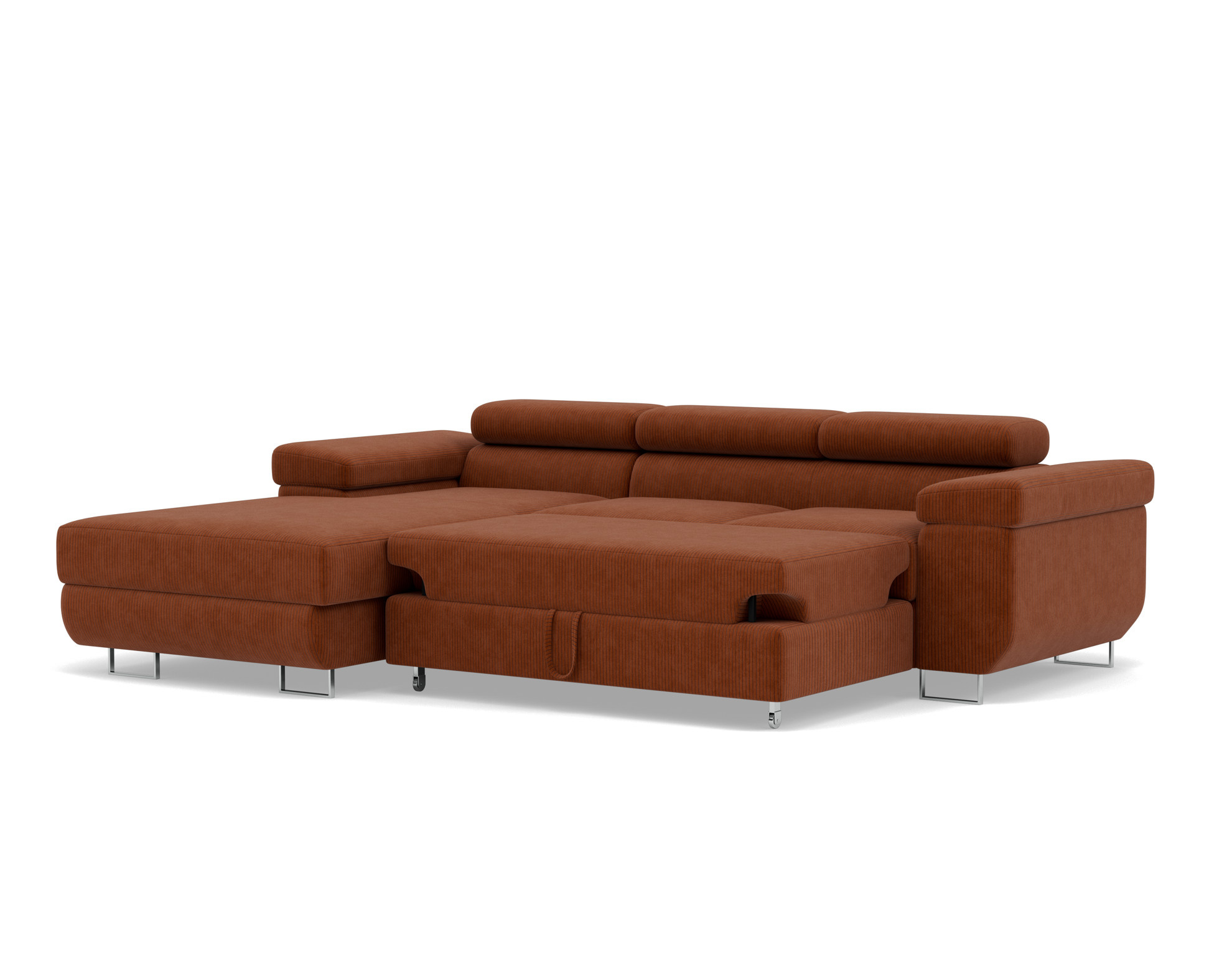 Pablo - canapé d'angle gauche - 6 places - convertible avec coffre et têtières réglables - en velours côt