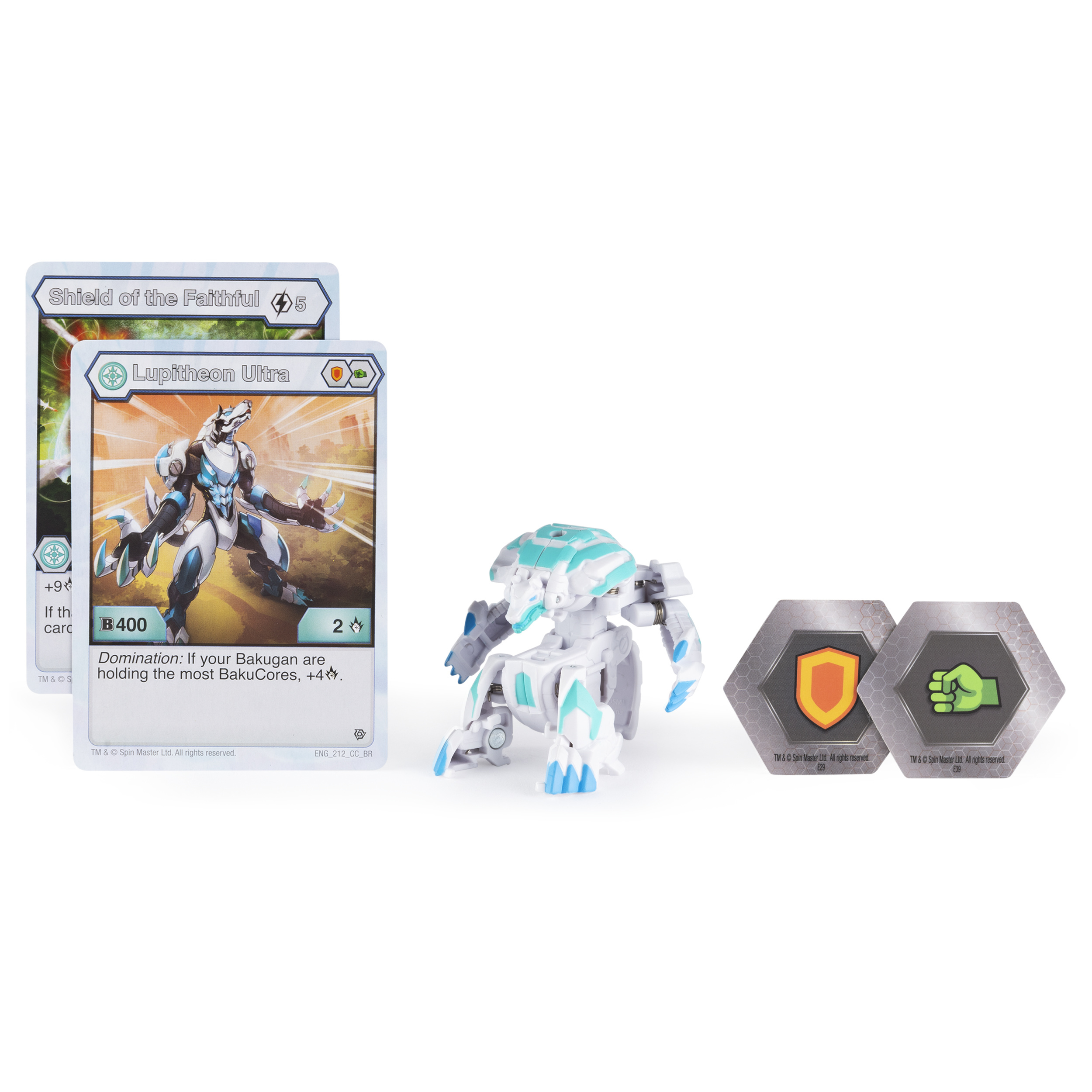 Contenu : 1 Bakugan Ultra , 2 cartes hexagonales BakuCore, 1 carte Personnage, 1 carte Maîtrise.