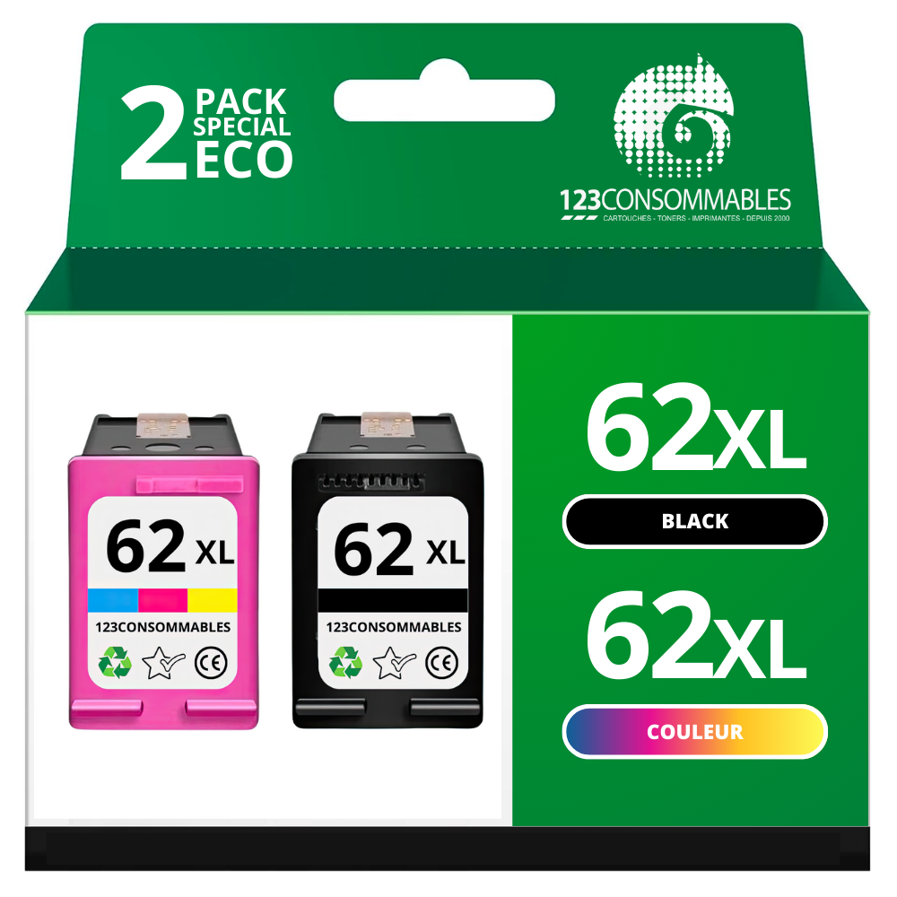 | Libellé | Pack 2 Cartouches compatibles HP 62 XL - SANS NIVEAU |