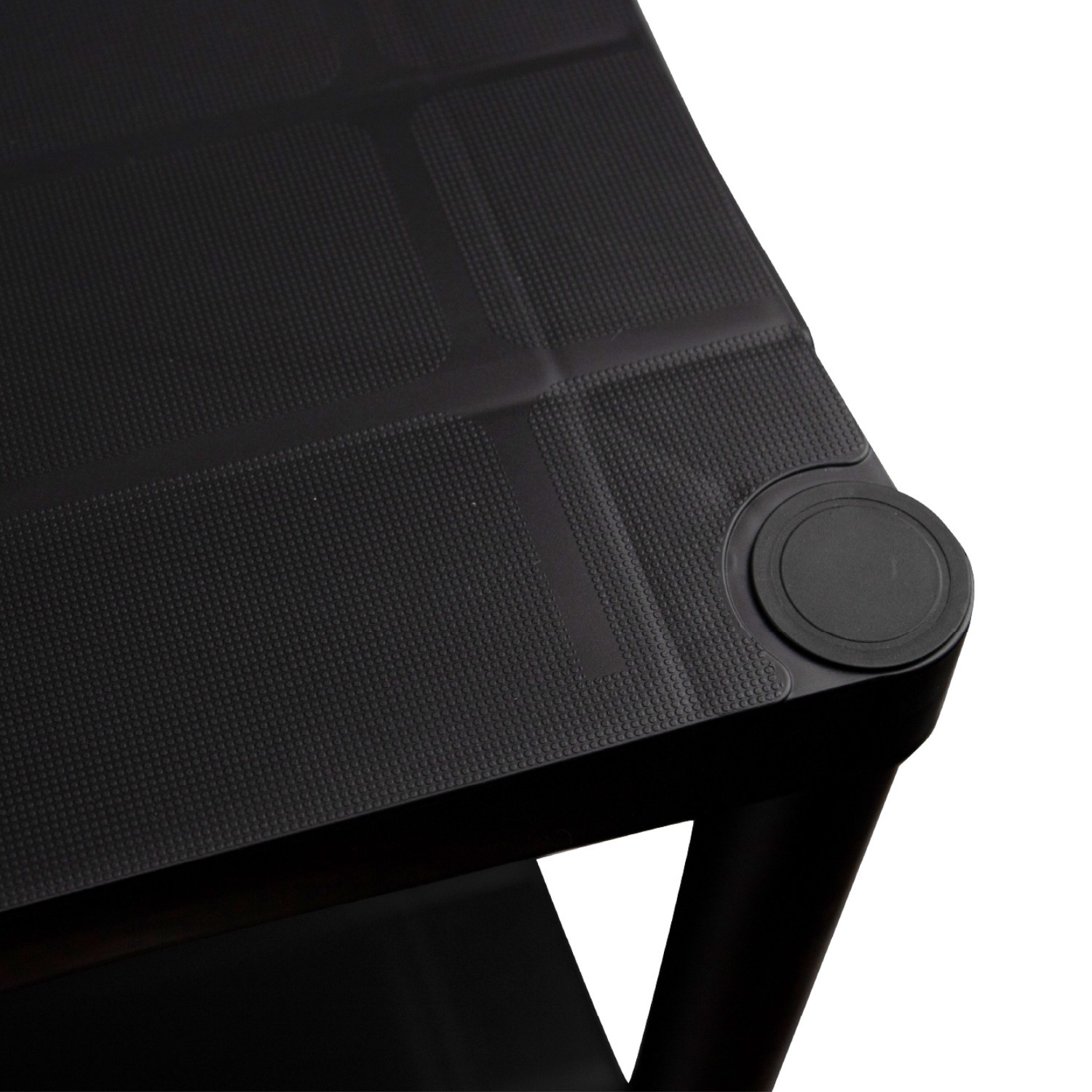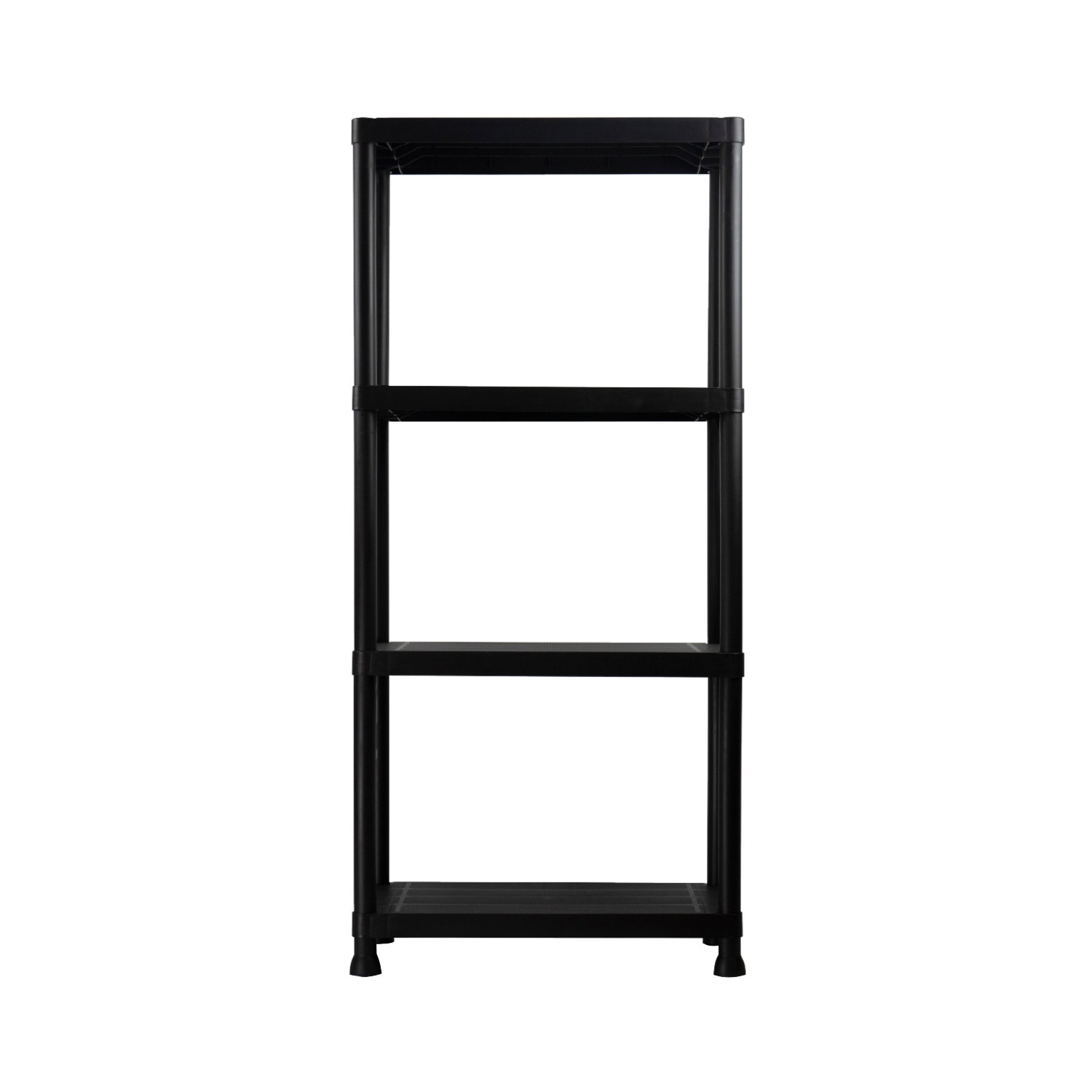 Ces étagères de rangement ont une structure solide en résine de haute qualité. Sa couleur noire au fini mat se fondra dans n'importe quel espace. Ses 4 grandes étagères vous permettront de placer livres, magazines, cartons, outils, jouets... Elles supportent une charge maximale allant jusqu'à 100kg par unité, à condition qu'elles soient réparties uniformément.