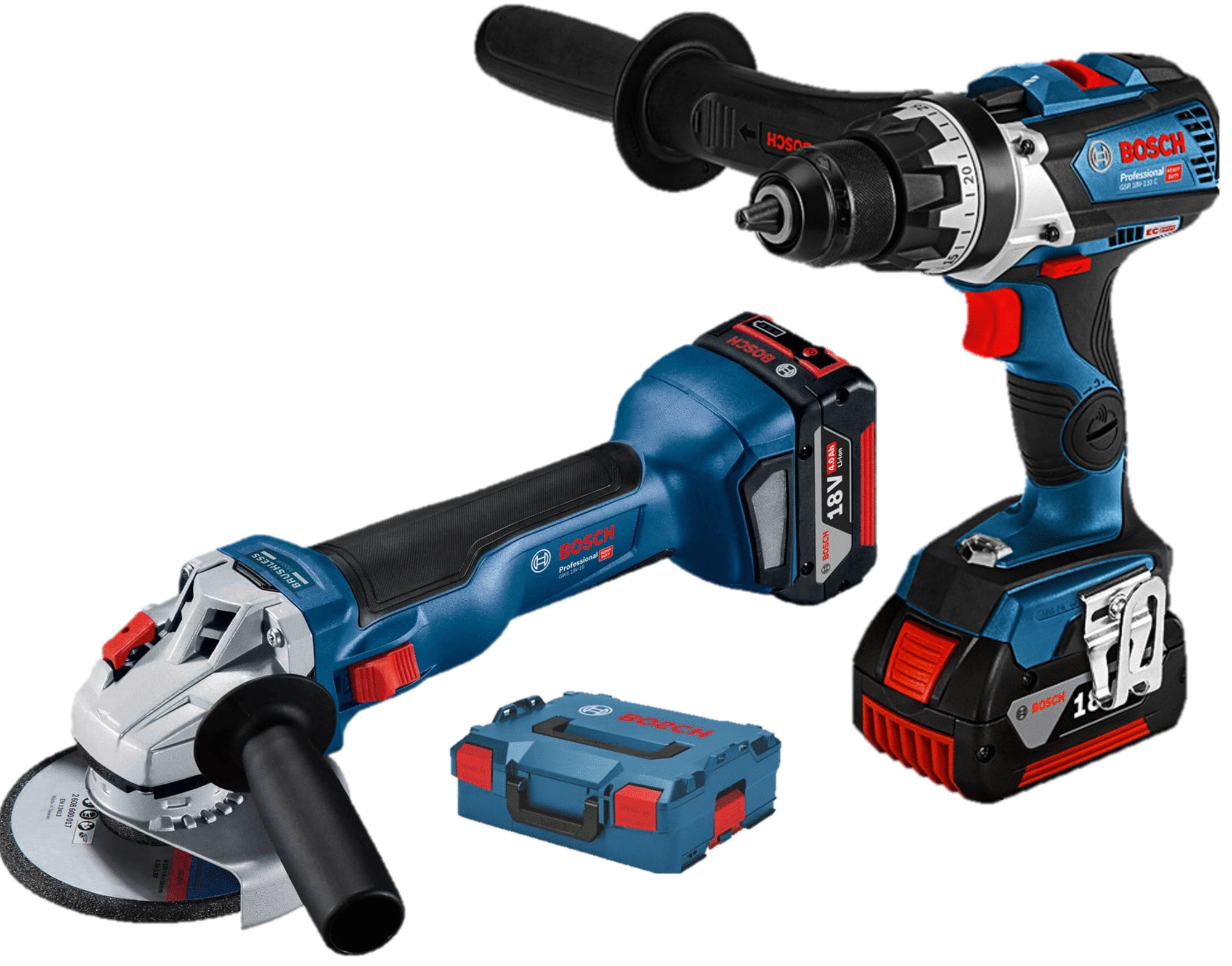 Pack 2 outils 18V (GSR 18V-110 + GWS 18V-10) + 2 batteries 5Ah + chargeur + coffret L-Boxx - BOSCH