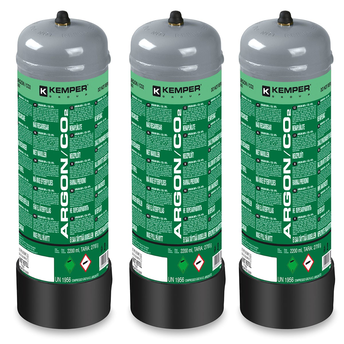 Pack 3 Bouteilles de gaz Argon + CO2 110 Bar 2.2 Litres Jetable Soudage MIG KEMPER