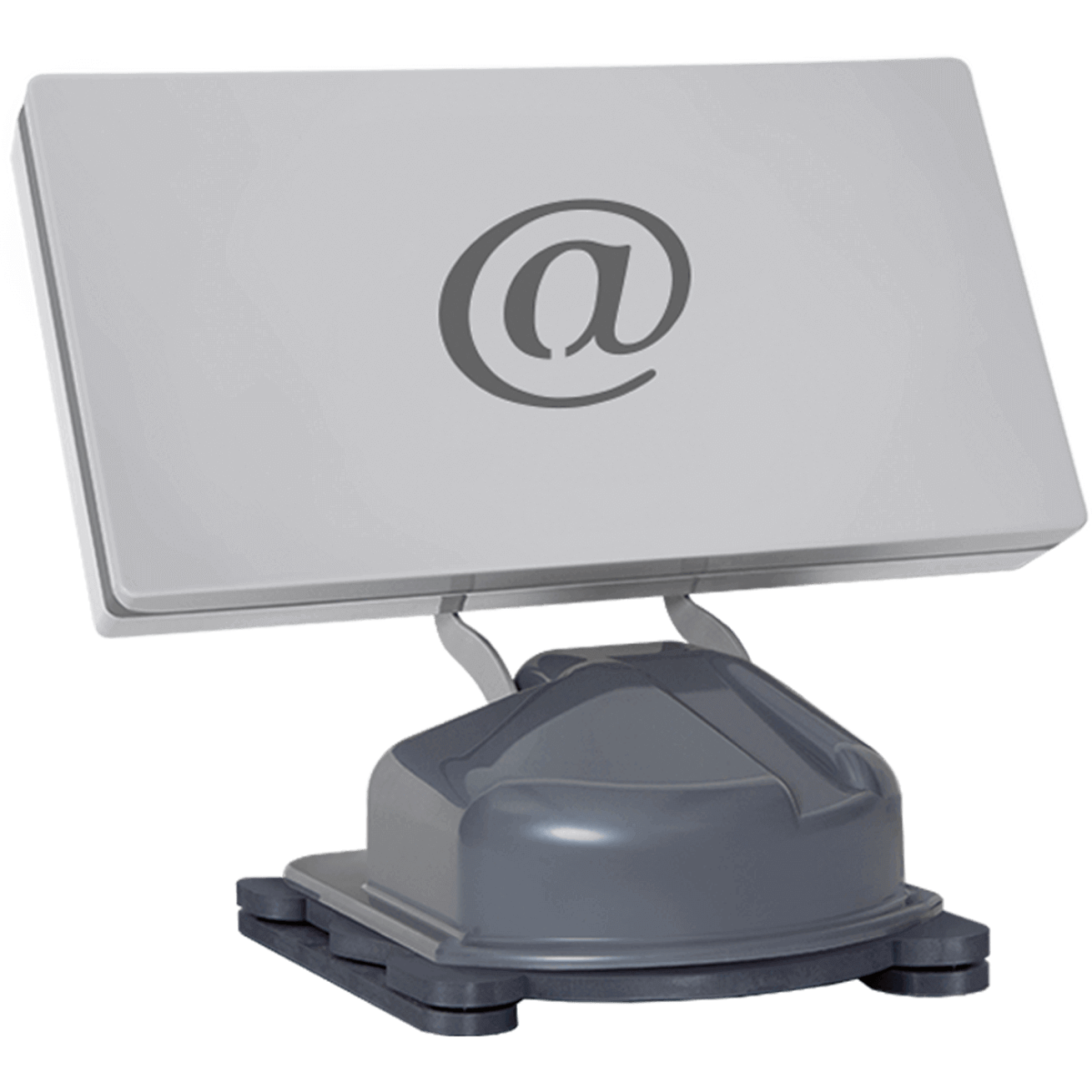 Composée d'une partie réception rectangulaire et d'une motorisation ALDEN, cette antenne automatique a l'avantage d'être particulièrement basse: sa hauteur repliée est de 13 cm.