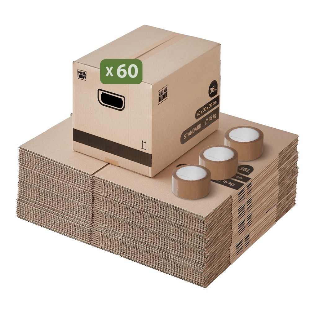 | Libellé | Pack and Move - Lot 60 cartons déménagement stockage livres - 40 x 30 x 30 cm - Poignées renforcées - 3 adhésifs offerts |