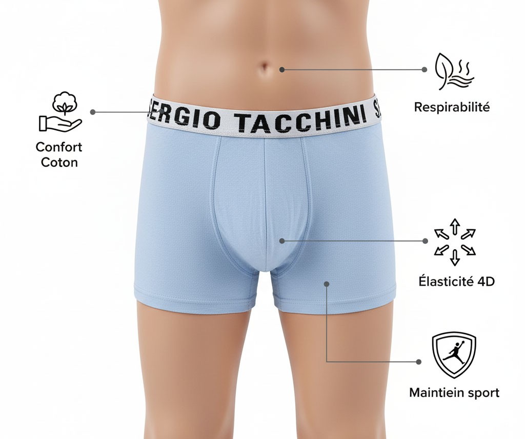 Offrez à vos enfants le Pack Lot de 4 boxers Sergio Tacchini, une référence en matière de confort et de style sportif. Confectionnés en 100% coton, ces boxers garantissent une respirabilité optimale et un touché doux adapté à la peau sensible des enfants. Pensés pour le quotidien scolaire, les activités sportives ou les moments de détente à la maison, ils associent une coupe ajustée à un maintien idéal, permettant une totale liberté de mouvement. La ceinture élastique contrastée, siglée du logo Sergio Tacchini, incarne l’héritage de la marque italienne, symbole de l’univers tennis et du sportswear élégant. Ce lot pratique comprend 3 coloris variés (gris, vert clair et bleu marine), disponibles en tailles 10/12 ans et 14/16 ans. Un essentiel du vestiaire enfant, mêlant style, confort et authenticité Sergio Tacchini.