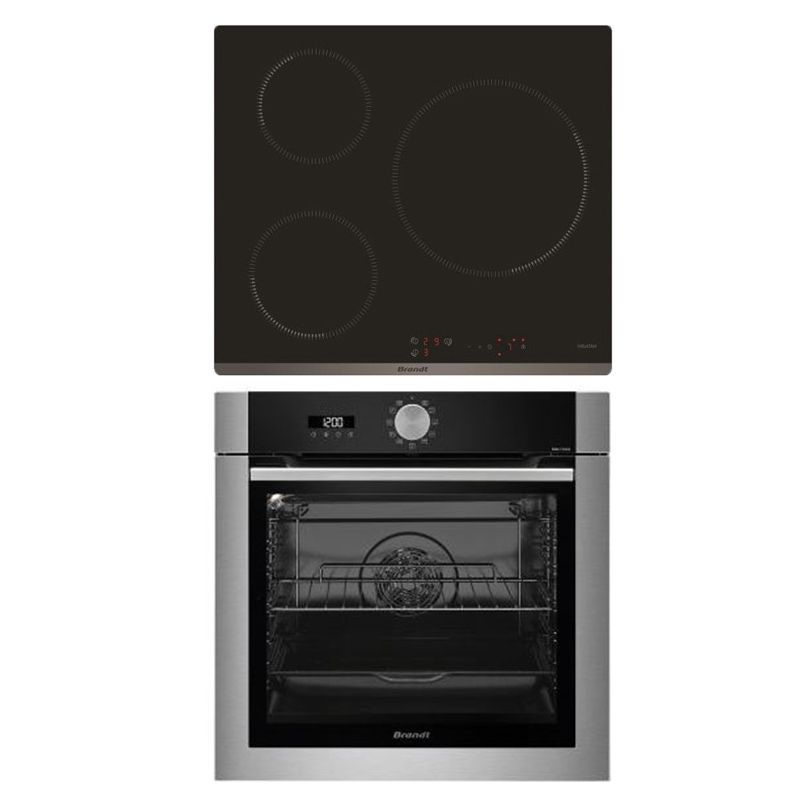 PACK BRANDT Four pyrolyse Encastrable 73L Chaleur tournante + Plaque de cuisson Induction 3 foyers 7200W