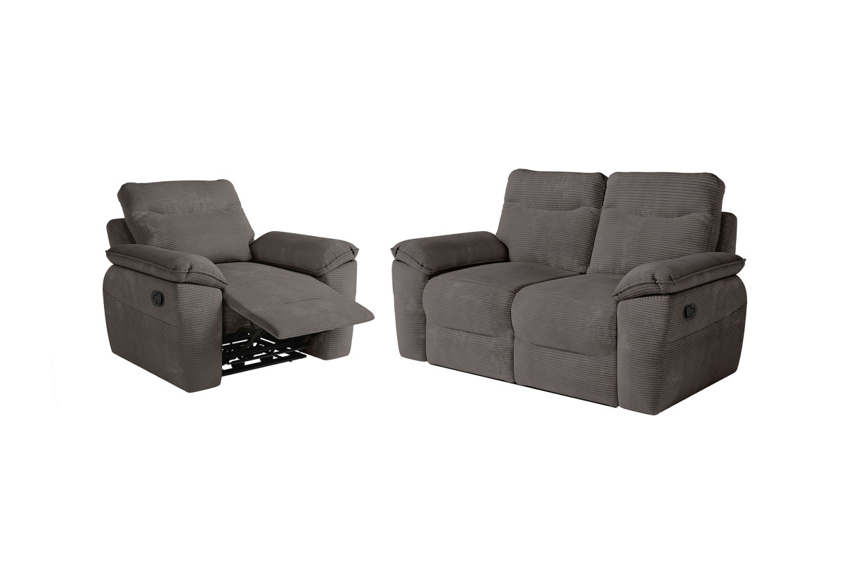 PACK - Canapé de relaxation ROSS manuel 2 places et fauteuil en velours côtelé - Gris