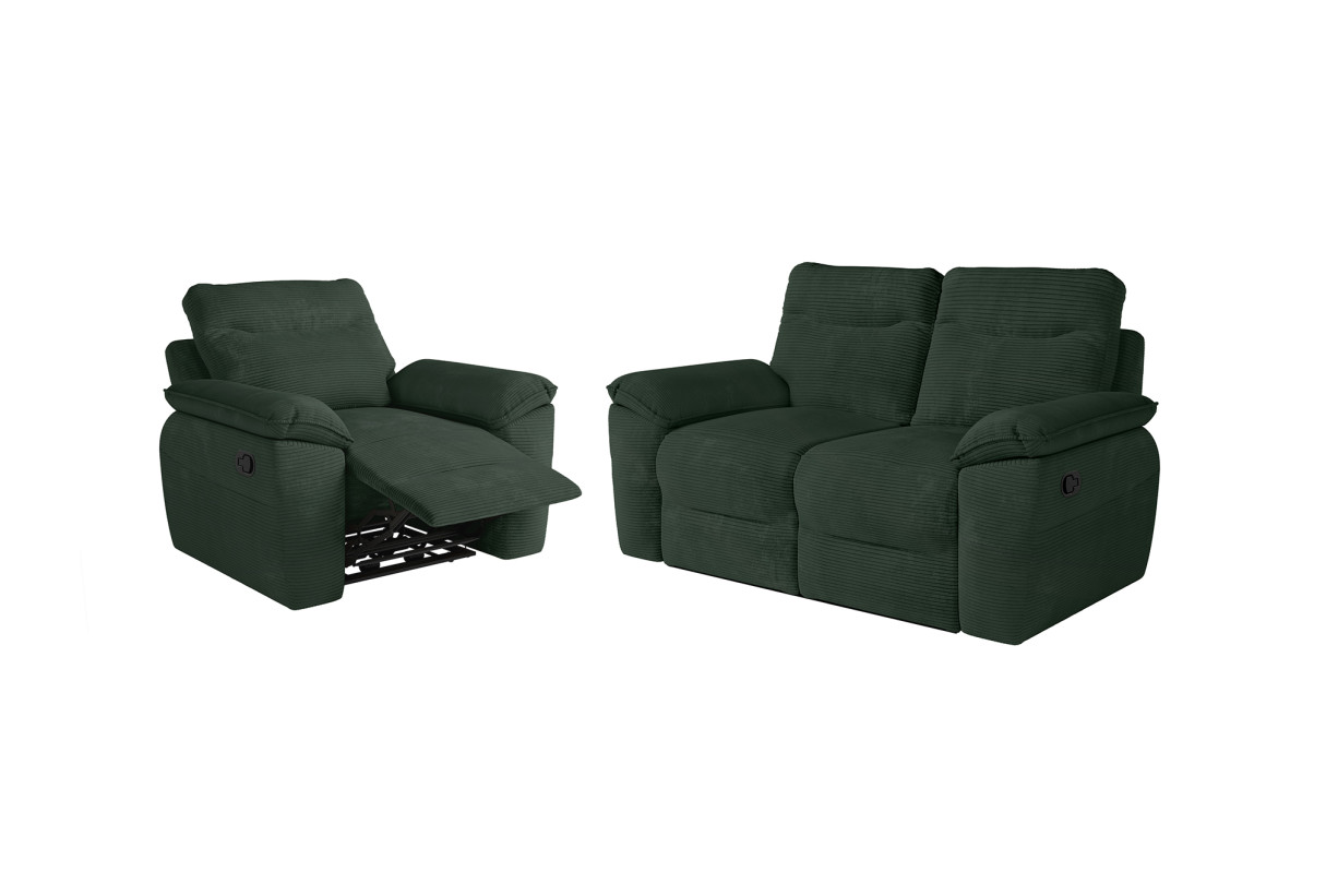 PACK - Canapé de relaxation ROSS manuel 2 places et fauteuil en velours côtelé - Vert foncé