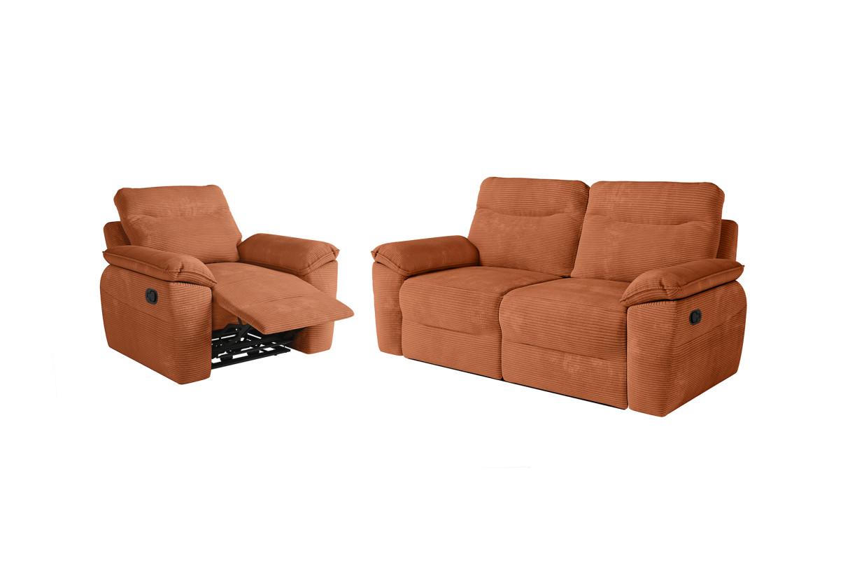 PACK - Canapé de relaxation ROSS manuel 3 places et fauteuil en velours côtelé - Terracotta