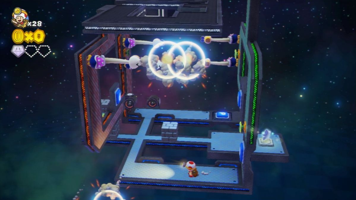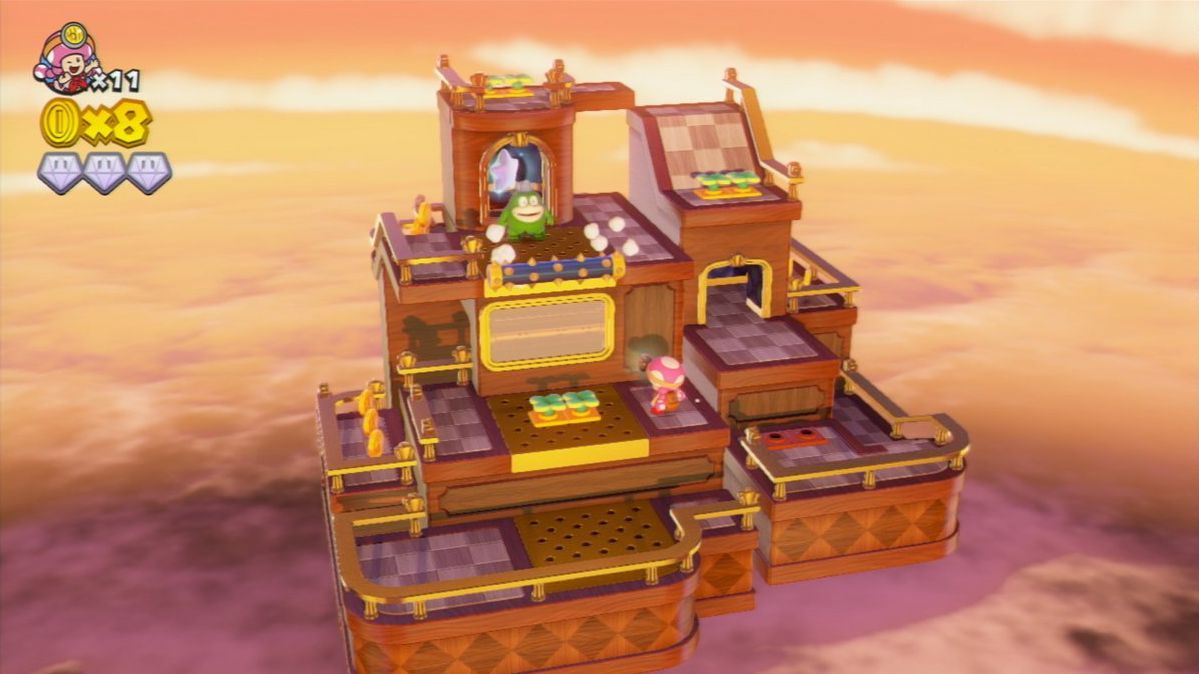 La quête de trésors du capitaine Toad et de Toadette les mène à une étoile de puissance. Mais, alors qu'ils célèbrent leur victoire, un énorme oiseau du nom de Wingo s'abat sur eux, dérobe l'étoile de puissance et embarque Toadette ! Sans la moindre hésitation, le capitaine Toad part à la recherche de sa partenaire, mais s'en sortira-t-il tout seul ? Ce ne sera pas facile et des défis l'attendent, mais il devra s'armer de courage. En avant, capitaine Toad !