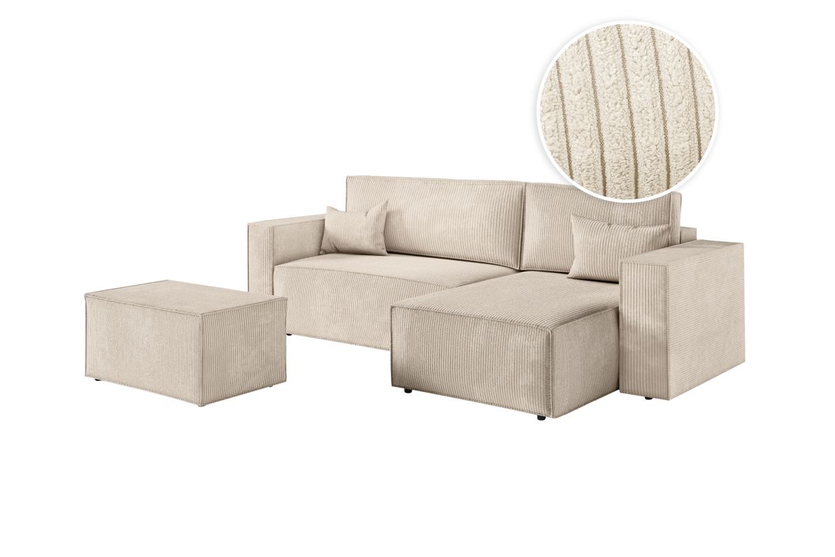 PACK - CLARISSE - Canapé d'angle convertible réversible avec pouf en velours côtelé - Beige