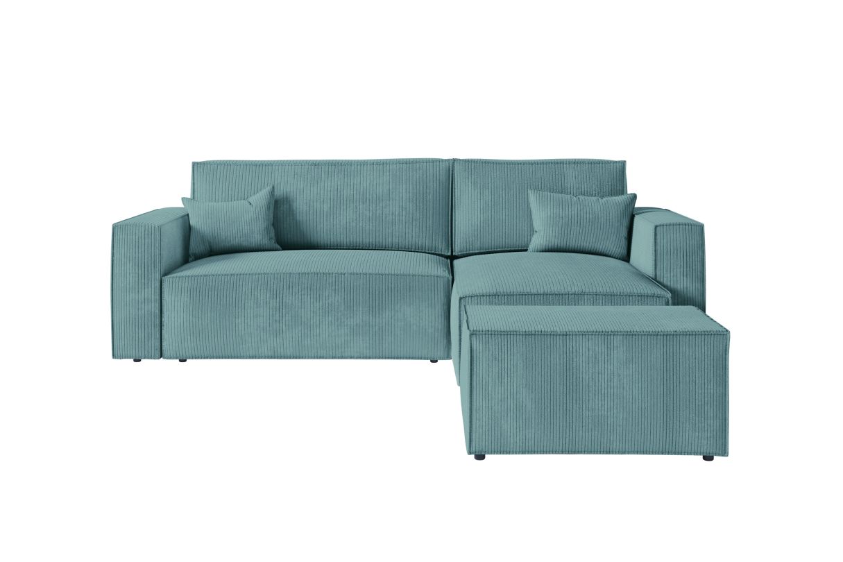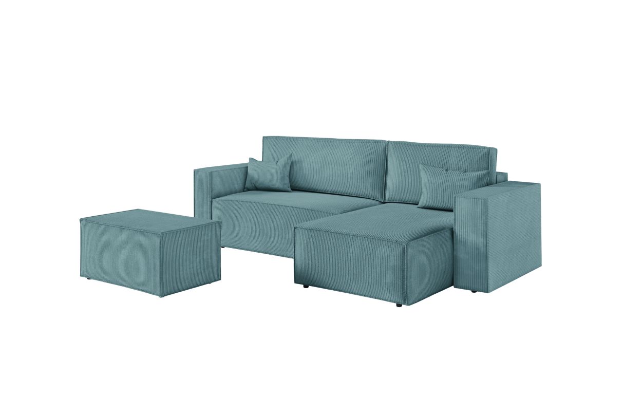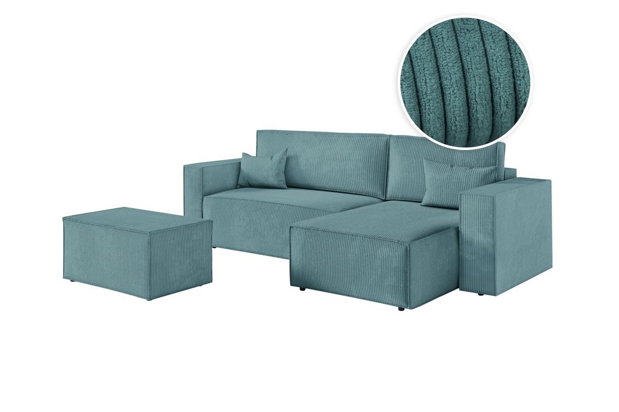PACK - CLARISSE - Canapé d'angle convertible réversible avec pouf en velours côtelé - Bleu clair