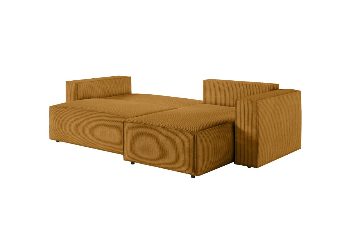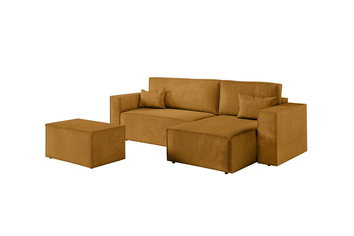 PACK - CLARISSE - Canapé d'angle convertible réversible avec pouf en velours côtelé - Jaune